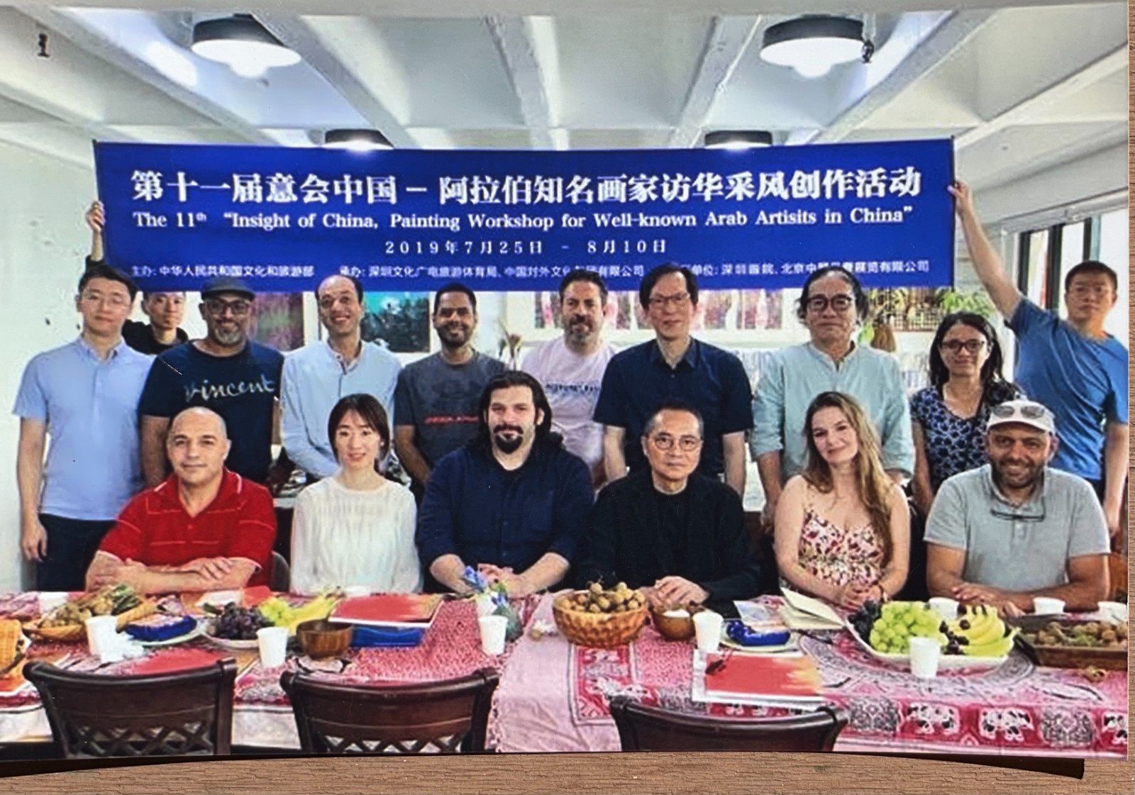 林天行(前排右三)表示,疫情前美協有香港與內地、或外國的展覽交流活動,圖為中東九國藝術家到美協交流。
