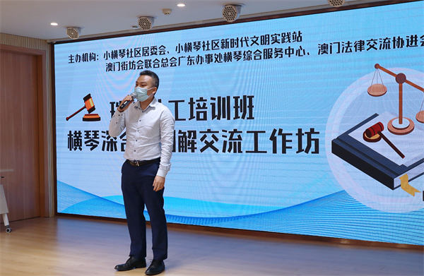 5月24日,澳門法律交流協進會與澳門街坊總會廣東辦事處於在橫琴聯合舉辦「合作區調解交流工作坊(第一季)」活動,珠、澳兩地律師進行案例法律分析,圍繞調解工作分享經驗、交流心得,強調社區服務需要善用調解,尋找化解紛爭的新方向。