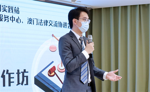 在活動上,澳門街坊會聯合總會廣東辦事處主任田翼首先介紹了澳門街坊總在橫琴粵澳深度合作區工作中所接到的澳門居民求助個案,以及常見的糾紛類型,並分享了街總幫助居民處理糾紛個案的經驗做法。