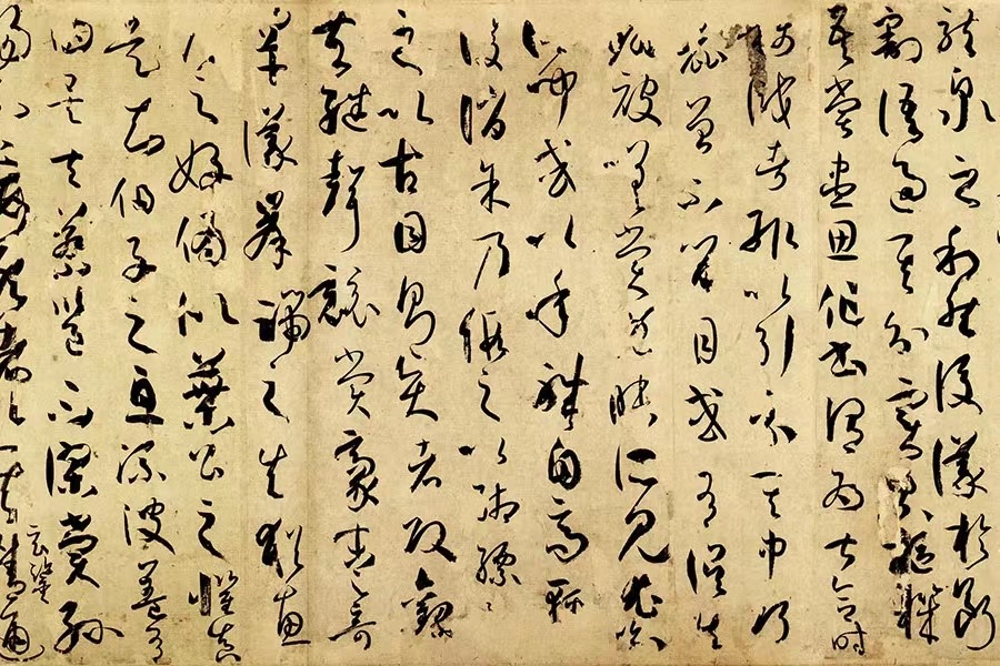 草書再往後就發展到「癲狂」地步,書法教學稱為「狂草」。例如唐朝的張旭喜歡在酒醉之後狂書,與中國功夫的「醉拳」有異曲同工之妙。雖下筆毫無羈絆,粗細對比誇張,激情四射飛濺,但行家還是能品鑒章法。張旭之後又冒出一個更喜歡瘋狂寫字的和尚叫懷素。兩人在書法界並稱「顛張醉素」。