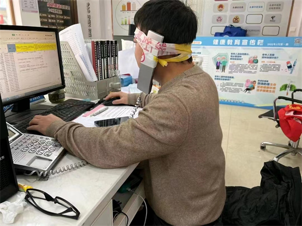 “被拍到照片的那會,永康市出現一例初篩陽性病例。社區工作者人力不足,我和一名同事一天需要撥打約500個流調電話,我們分秒必爭,想了個笨辦法,就是把話筒綁額頭上,綁得太緊,在額頭上留下了深深的印記。”程翱飛說,“辦法總比困難多嘛。”