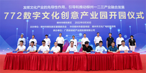 5月30日,廣西柳州市772數字文化創意產業園舉行開園儀式。這也是廣西首家數字文化創意產業園,將發展「創意設計+動漫遊戲+直播+短視頻+電商」為核心,力爭打造成為國內新銳的文創產業和遊戲動漫產業聚集區,推動柳州一二三產業融合、產供銷鏈條貫通。