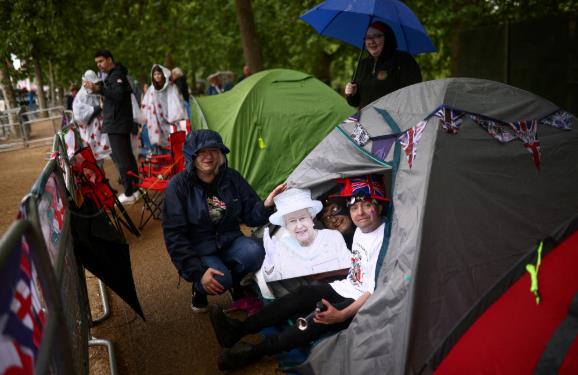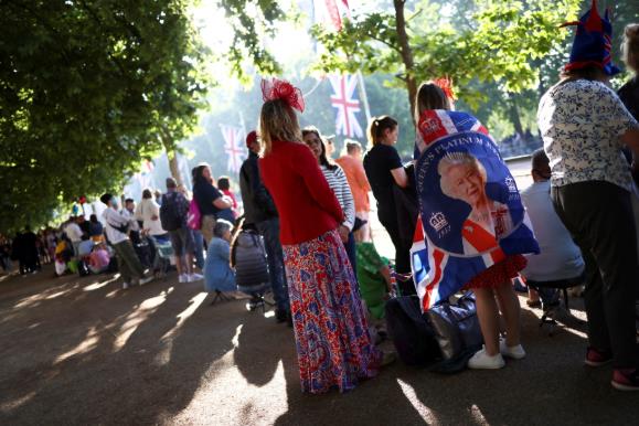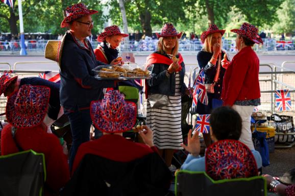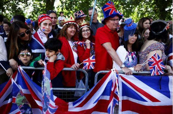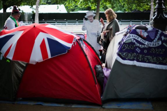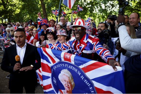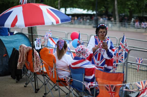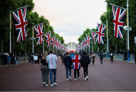 當地時間6月2日開始,英國各地將舉行為期4天的慶祝英國女王伊麗莎白二世在位70周年(又稱白金禧年)活動。系列活動包括閱兵式、飛行表演、音樂會等。官方慶祝舉行活動前,大街小巷已經掛滿了英國國旗,王室粉絲在閱兵式路上紮帳篷,各種巨型手工編織的「女王」令人驚艷,預計街頭將迎來1200萬人狂歡慶祝。