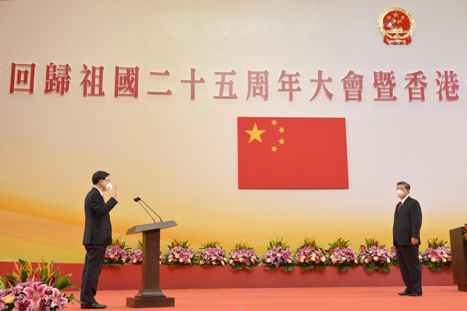 接着,由習近平監誓,香港特別行政區第六屆政府主要官員在李家超帶領下宣誓就職。