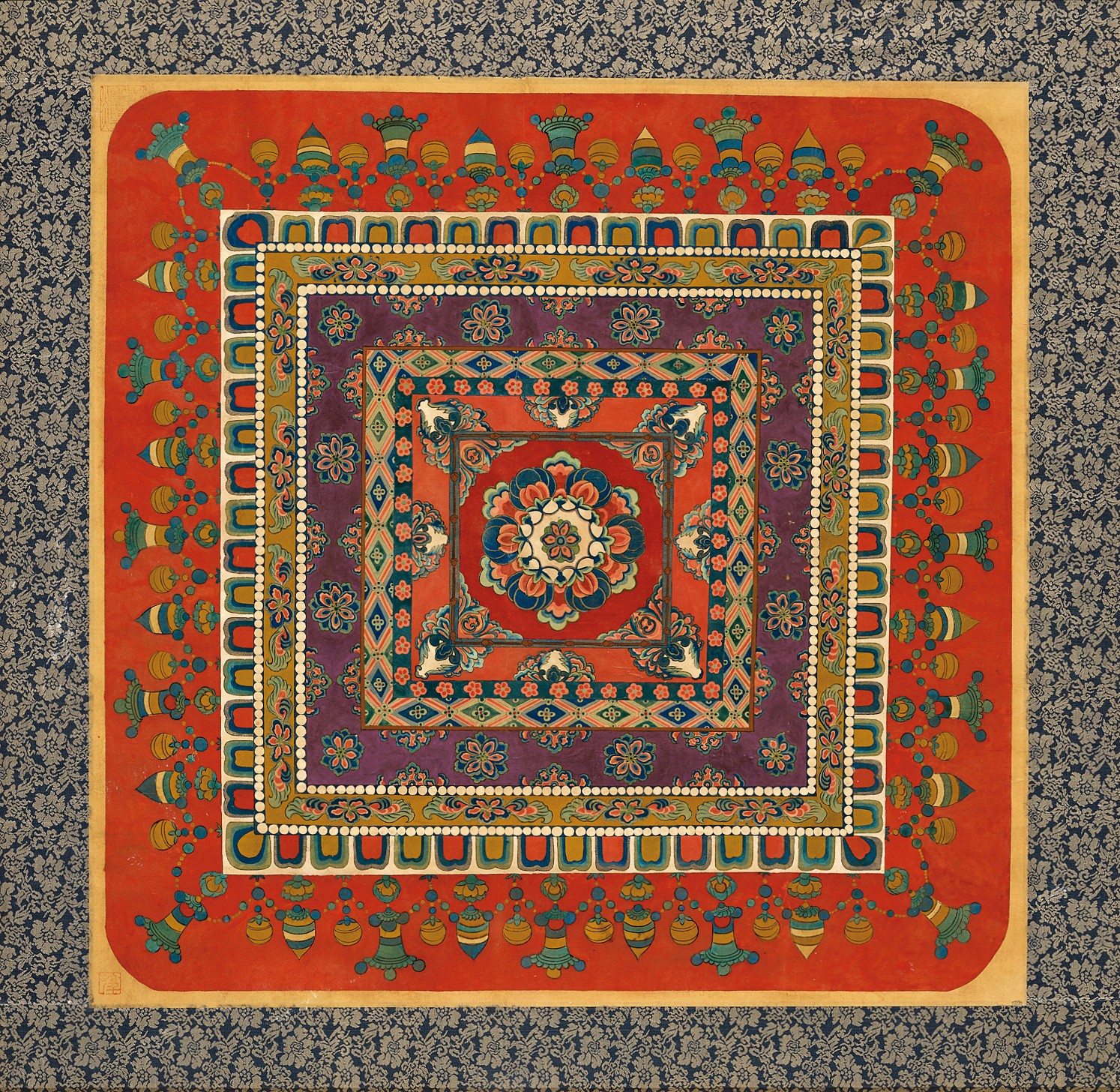 中國書畫專場有張大千、吳冠中及林風眠等當代水墨巨匠傑作,也有徐悲鴻、齊白石及于右任等書畫名家之作。當中張大千的一系列作品中最吸睛的是仿王詵《連山斷磵圖》,這幅於張大千盛年時期所作的巨幅臨古山水工筆寫於絹本之上,尺幅宏大,層次井然。山岩的皴法以曲折的散鋒筆法繪寫,山石以水墨和赭石寫成,茂密的松針以花青暈染,充滿生命的張力。頂部裱邊有張大千擬董其昌的長文題跋,中國書畫部專家林子瓏向記者表示:「細看這幅作品,在風格、材料上都非常特別,裱畫紙張已經破舊不堪了,張大千依然重新裝裱。」作品媒材的選擇和做舊的手法可見大師擬古之用心。另一幅《臨盛唐藻井》繪畫了中國古建築中具裝飾性的木質結構頂棚,絳紅色的中心方井上繪一朵由蓮花、雲紋等多種紋樣組成的大型五彩寶相花,方井外有7層五彩邊飾,分別是番蓮紋、梅花紋、菱形紋、蓮瓣紋、纏枝蓮紋、與瓔珞及鈴鐺紋飾等,充滿敦煌藝術特色。各種紋樣以工整細緻的疊暈手法,層次分明,濃重瑰麗,展現了綺麗華貴的盛唐風格。此拍品來源於張大千知己山田喜美子的珍藏,從畫作精美裝裱,可見山田喜美子與其家人對此作的鍾愛。 (記者、部分圖片:Janice)