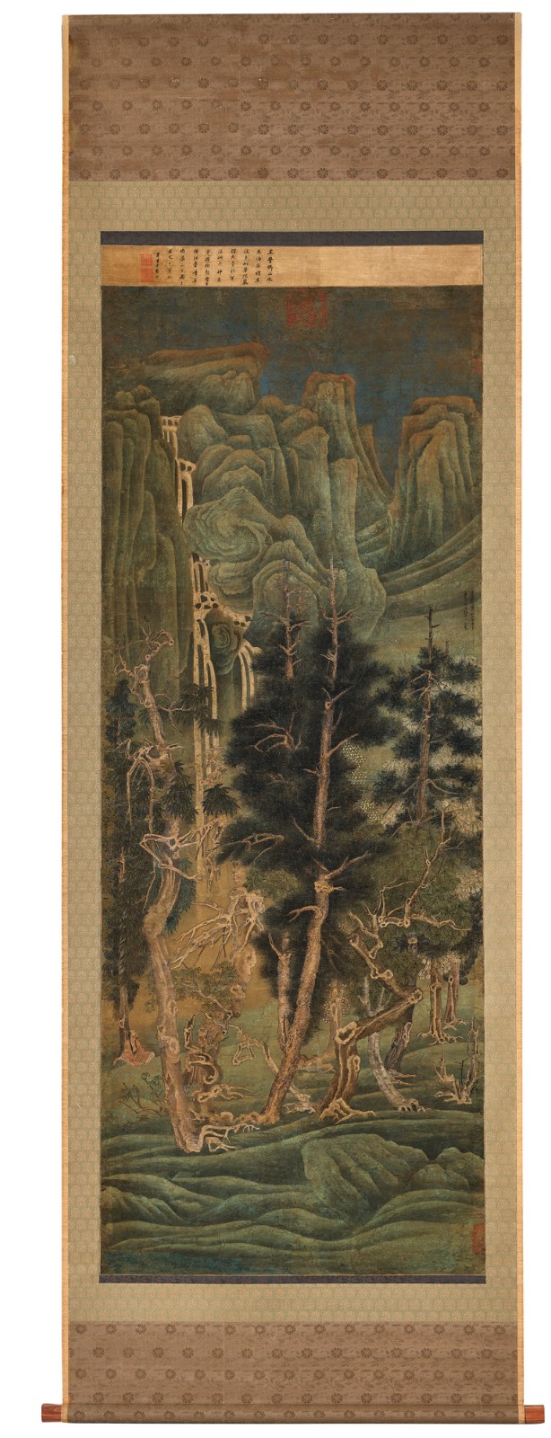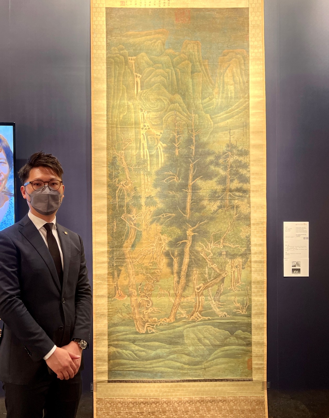 中國書畫部專家林子瓏與張大千作品仿王詵《連山斷磵圖》。