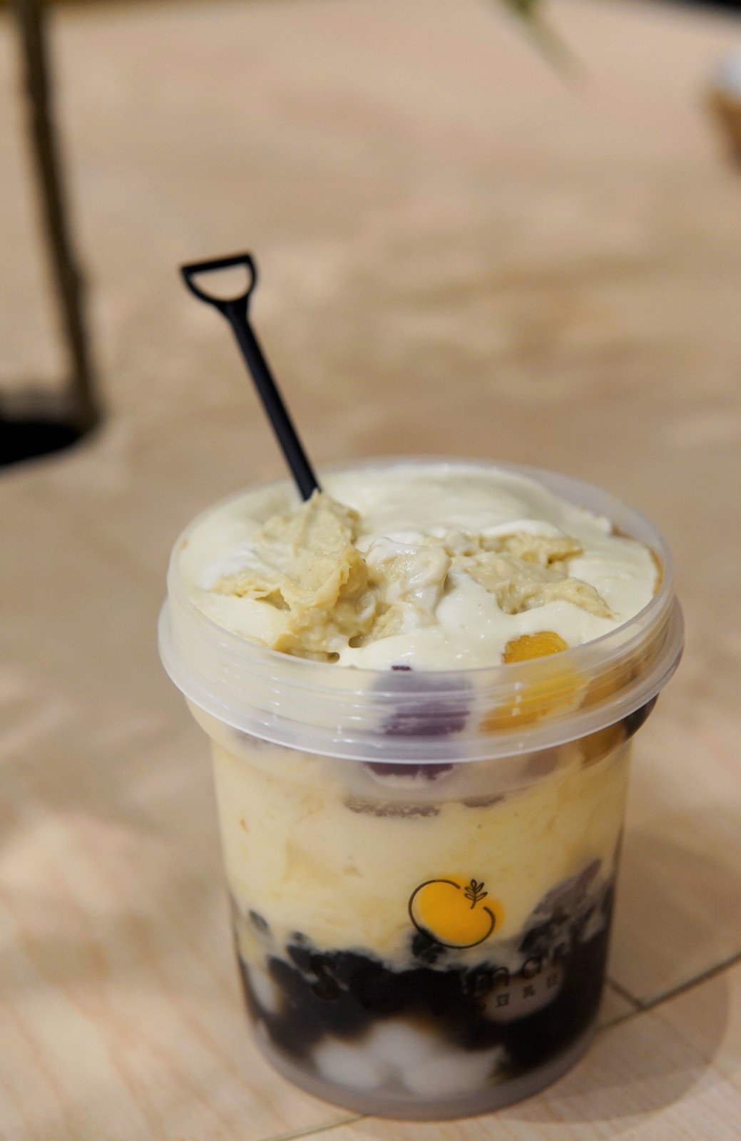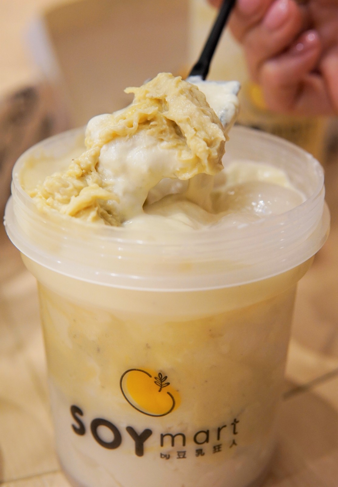 店舖現正推出一系列榴槤甜品,將榴槤融入豆乳食品。榴槤系列用上D24蘇丹王品種,果肉厚實,口感綿密,甜味適中,與幼滑的豆乳配搭,不會喧賓奪主。筆者推介「榴槤奶蓋豆花」,杯身最外圍是濃郁榴槤,底下是豆花,加上自家手製的白玉,帶有陣陣糯米香,榴槤、豆花屬口感綿密的食材,白玉則增加口感層次。「超煙韌榴槤奶蓋」同時滿足「榴槤控」、喜愛台式甜品和台式飲料的食客,內裏用上台灣直送珍珠、小丸子和九份特產芋圓,煙韌適中的丸子配合7.6特濃豆乳打成的奶蓋及榴槤,清甜不膩,每一口都能吃到滿滿的配料。