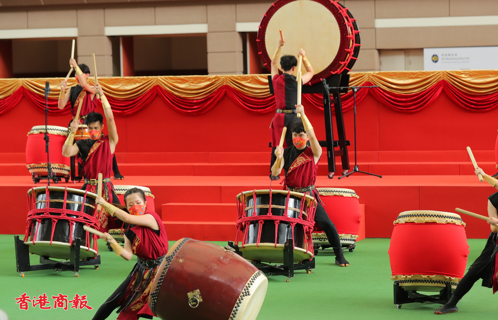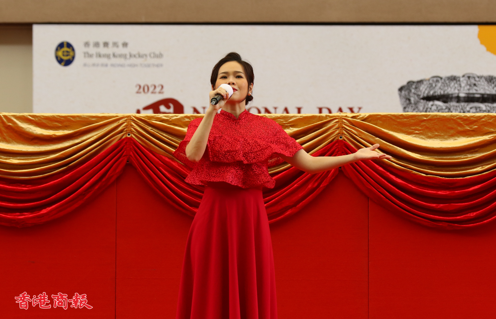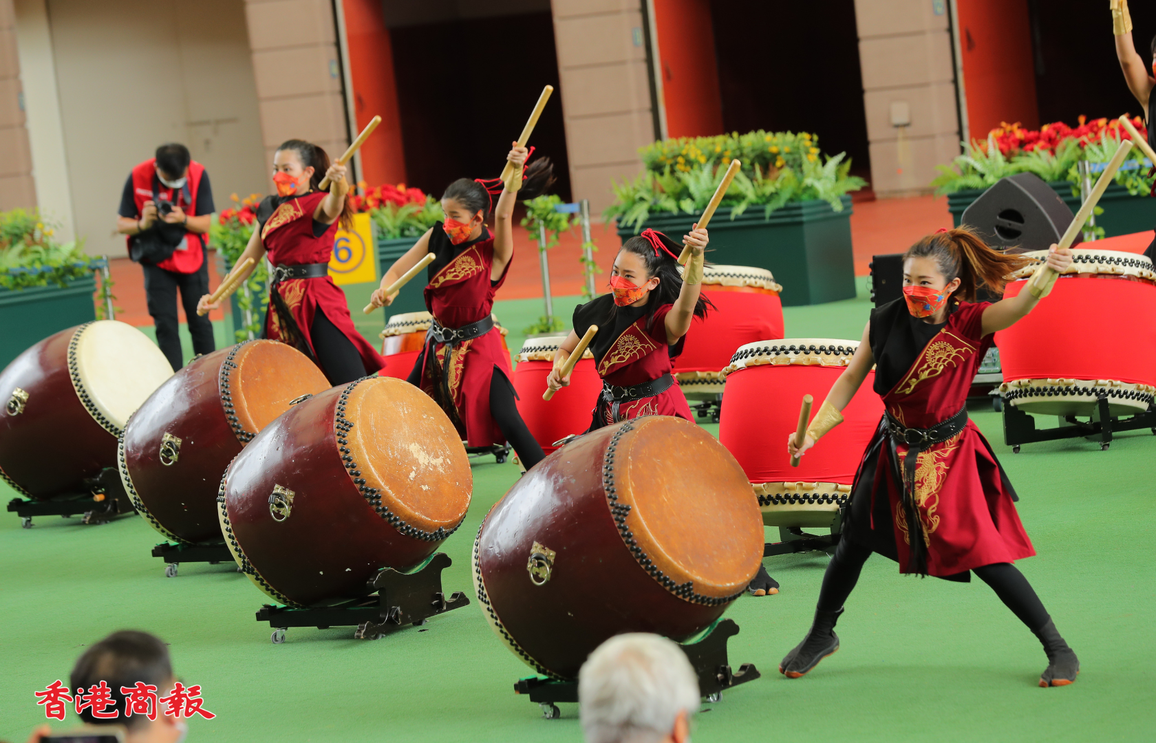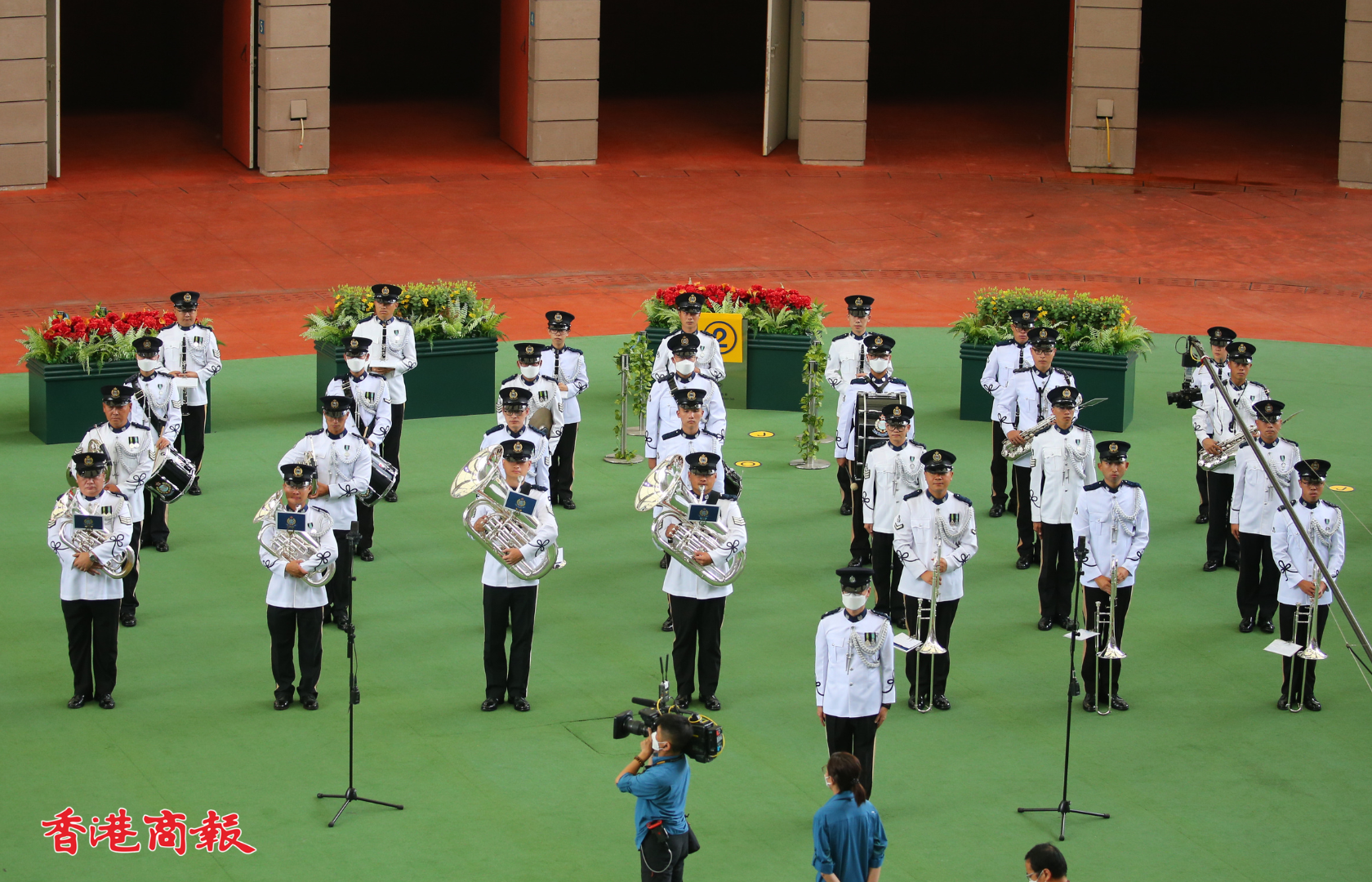 國慶賽馬日今日(1日)在沙田馬場上演,開幕匯演於馬匹亮相圈舉行,中央人民政府駐香港特別行政區聯絡辦公室宣傳文體部副部長張國義、香港賽馬會主席利子厚及一眾董事一同為開幕儀式主禮。