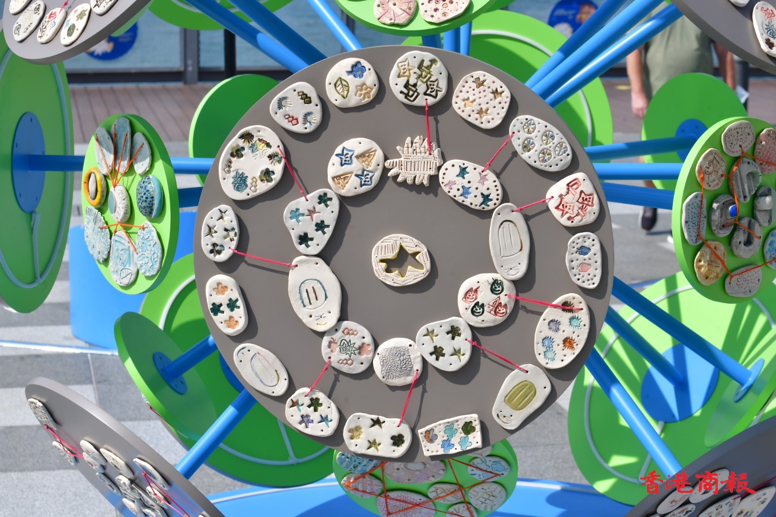 場內展出逾3000件由復康人士、海外藝術家、不同界別的社區創作夥伴和公眾人士,合計超過1000人共同創作的陶瓷片。在晚間,藝術裝置更會有七彩燈光串連。(記者 崔俊良攝)