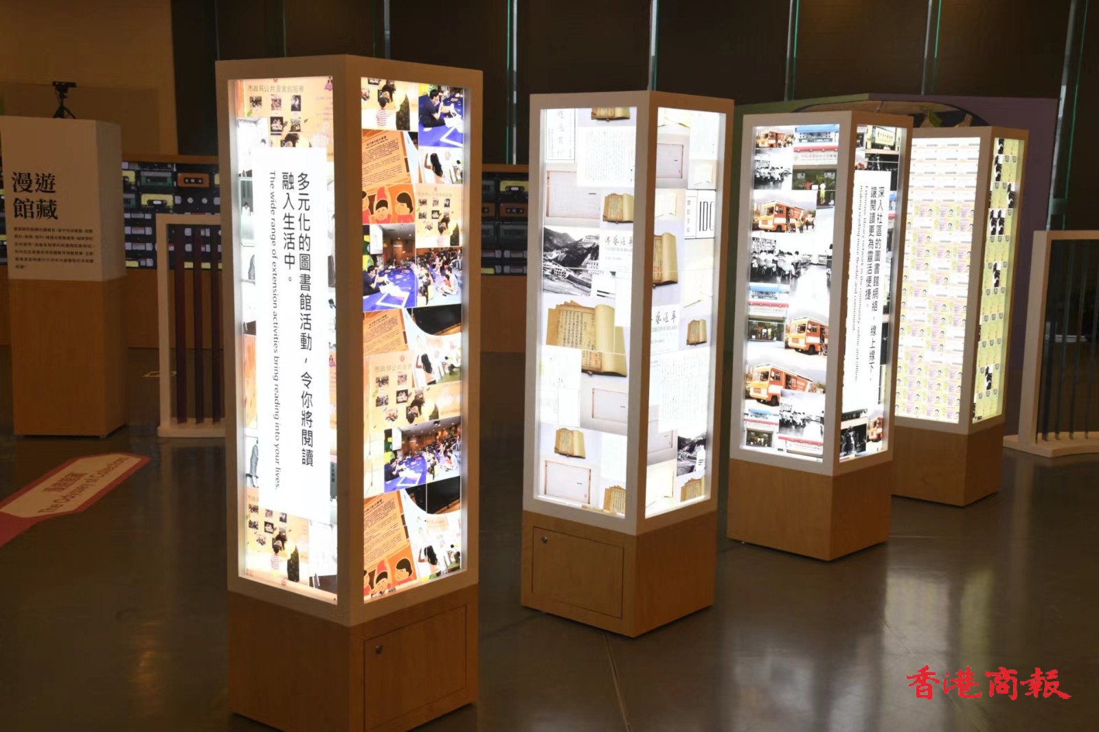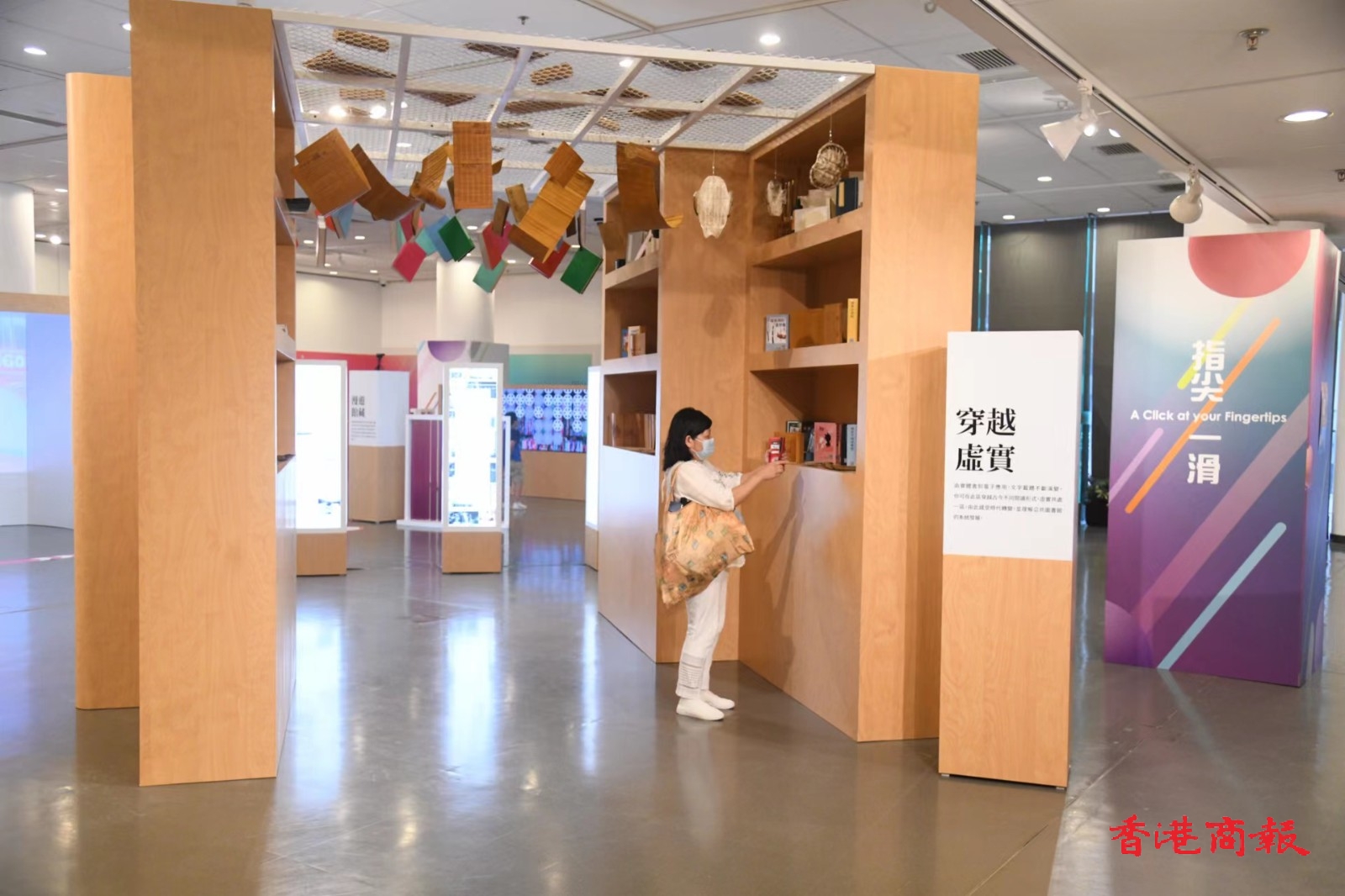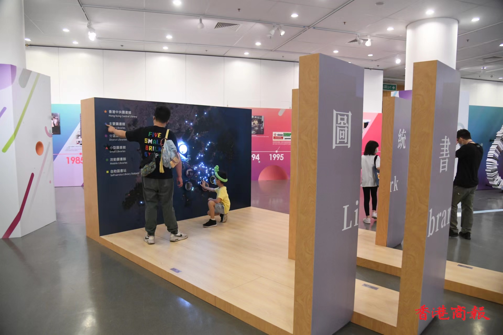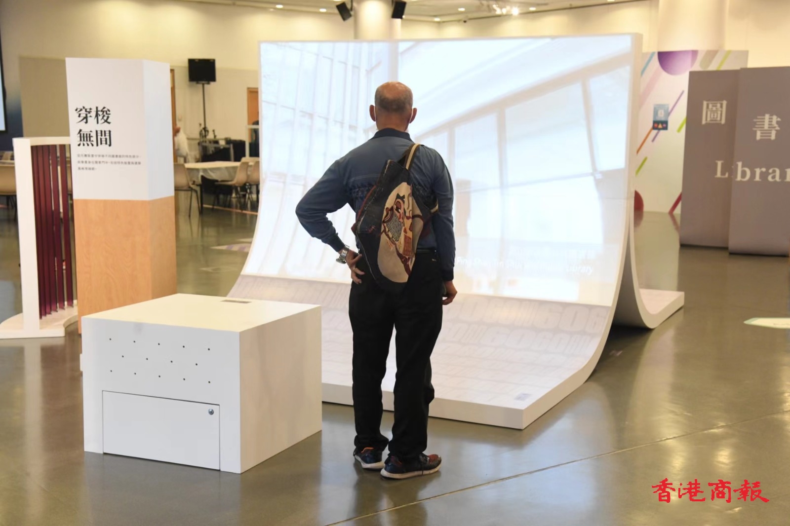 展覽分為六個體驗區:「遊歷時空」、「穿梭無間」、「漫遊館藏」、「穿越虛實」、「同創故事」與及位於五區之間的「探索無極」。公眾將在展覽中感受圖書館不同時代的演變,回味昔日流連圖書館的那些年,重新體驗圖書館與市民一起成長的關係,由此連繫一起。(記者 蔡啟文 攝)