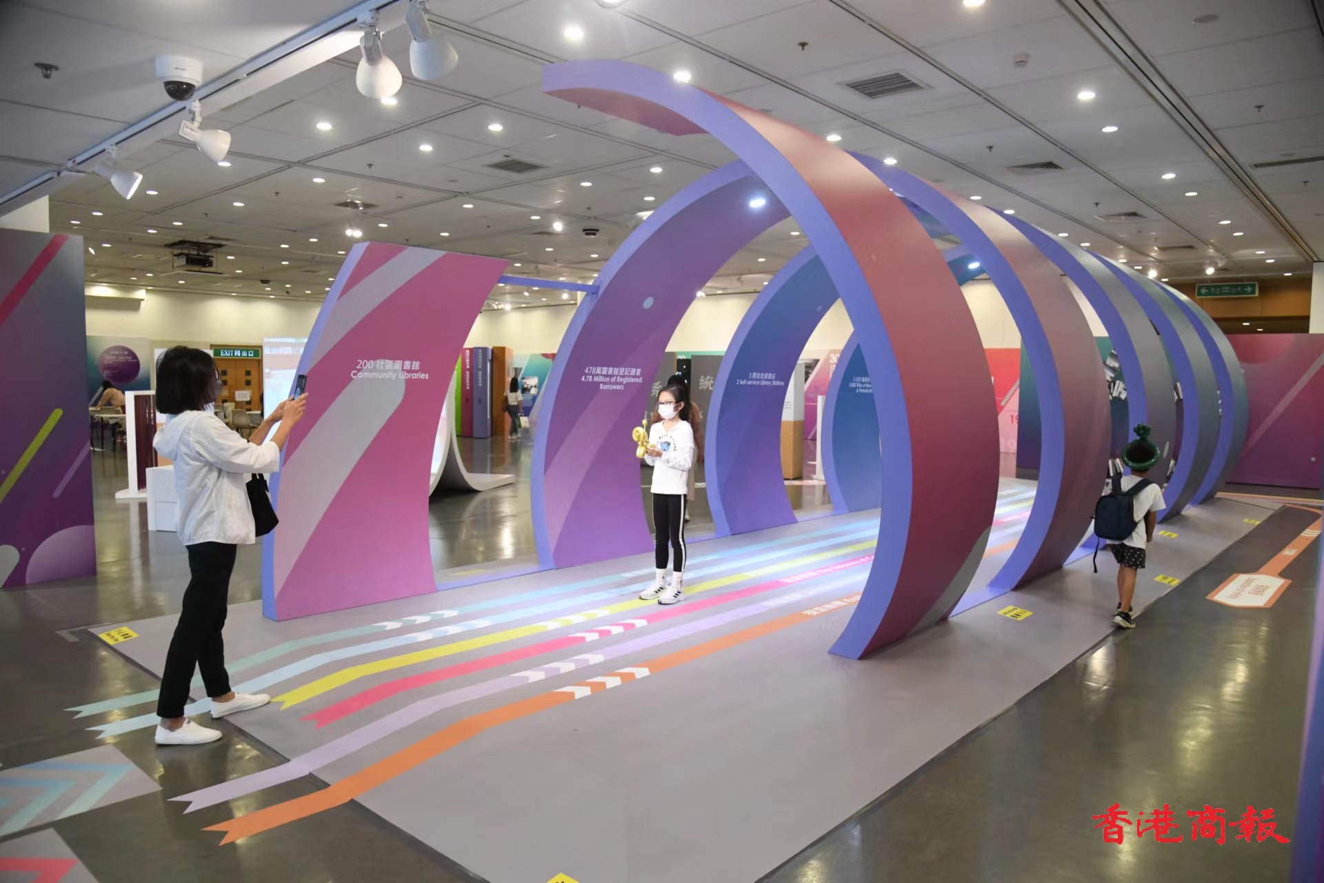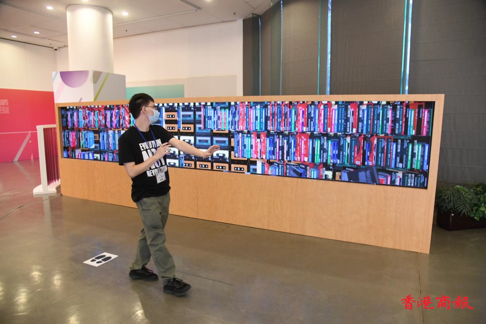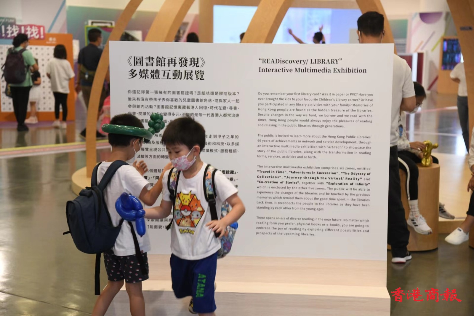 展覽分為六個體驗區:「遊歷時空」、「穿梭無間」、「漫遊館藏」、「穿越虛實」、「同創故事」與及位於五區之間的「探索無極」。公眾將在展覽中感受圖書館不同時代的演變,回味昔日流連圖書館的那些年,重新體驗圖書館與市民一起成長的關係,由此連繫一起。(記者 蔡啟文 攝)