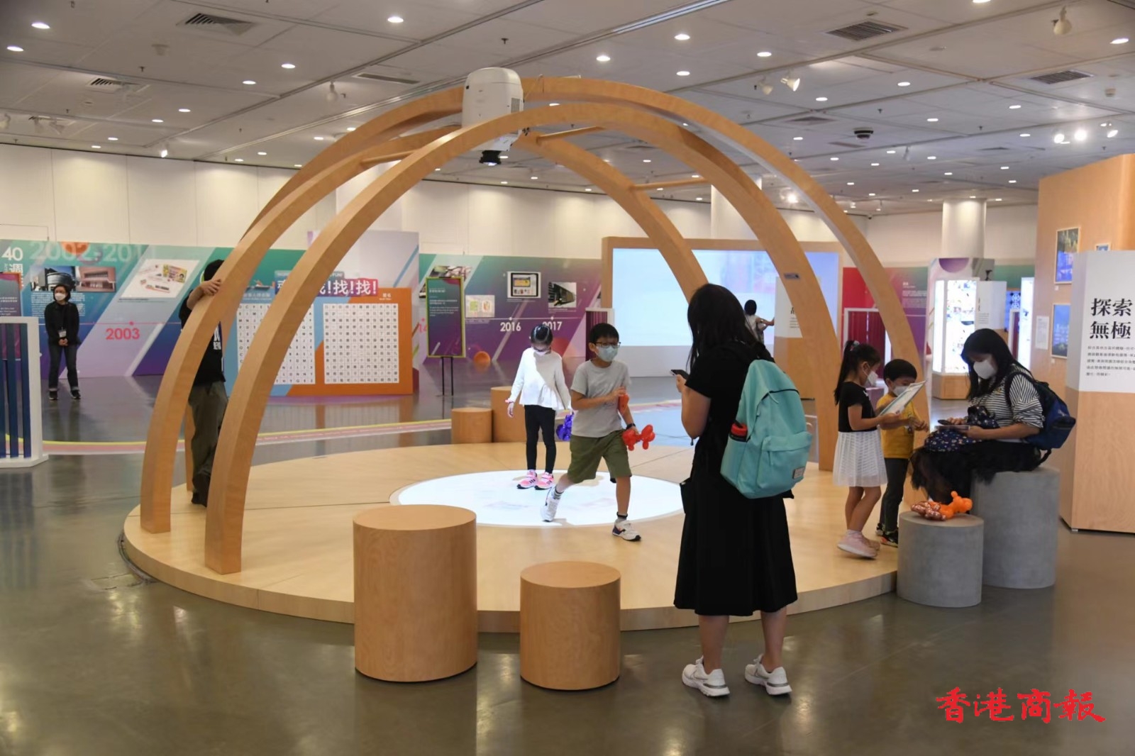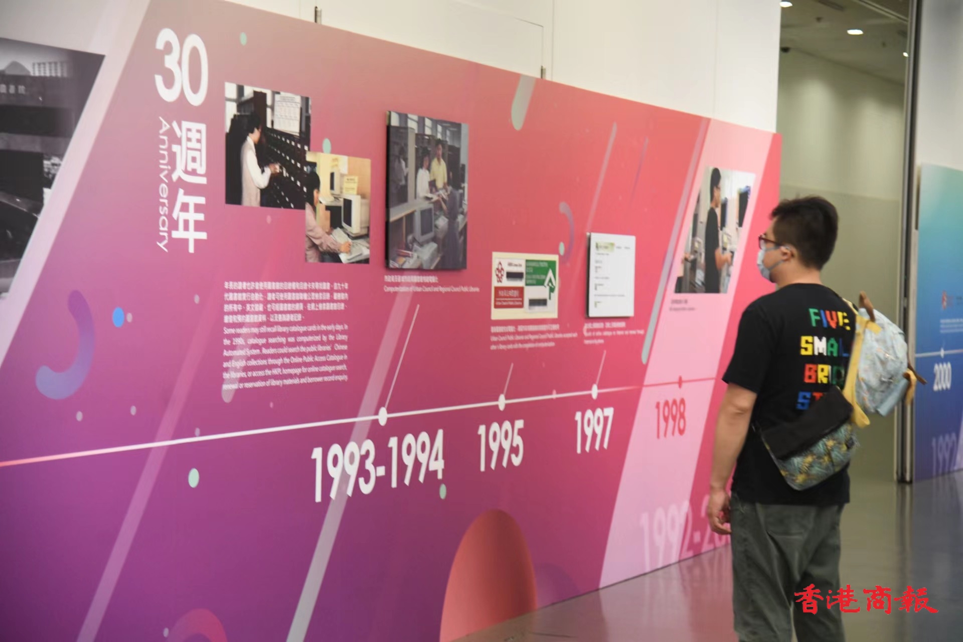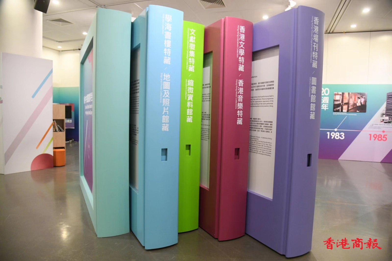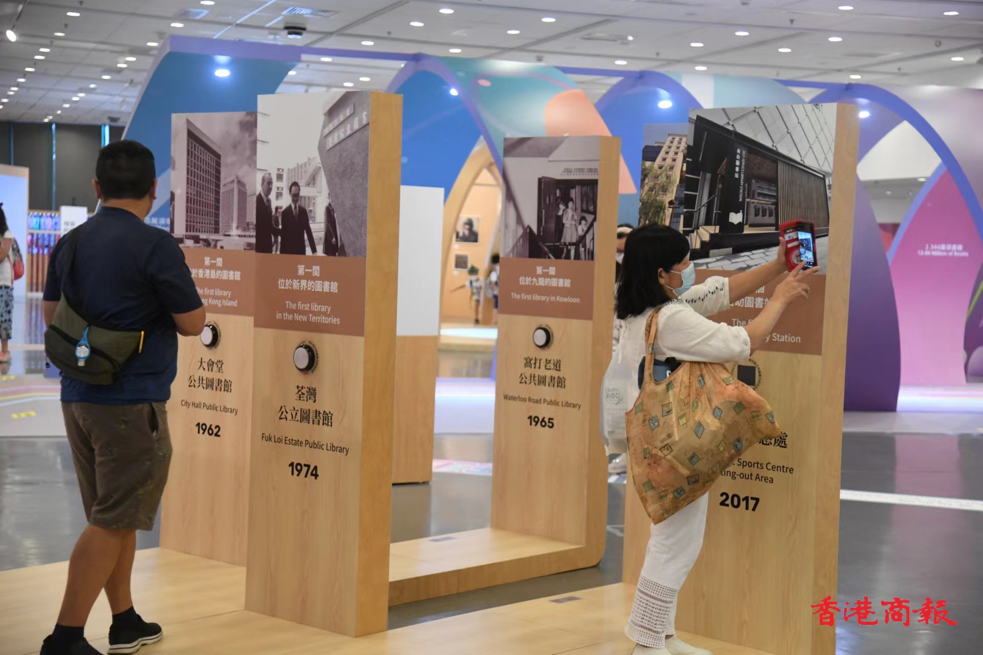 展覽分為六個體驗區:「遊歷時空」、「穿梭無間」、「漫遊館藏」、「穿越虛實」、「同創故事」與及位於五區之間的「探索無極」。公眾將在展覽中感受圖書館不同時代的演變,回味昔日流連圖書館的那些年,重新體驗圖書館與市民一起成長的關係,由此連繫一起。(記者 蔡啟文 攝)