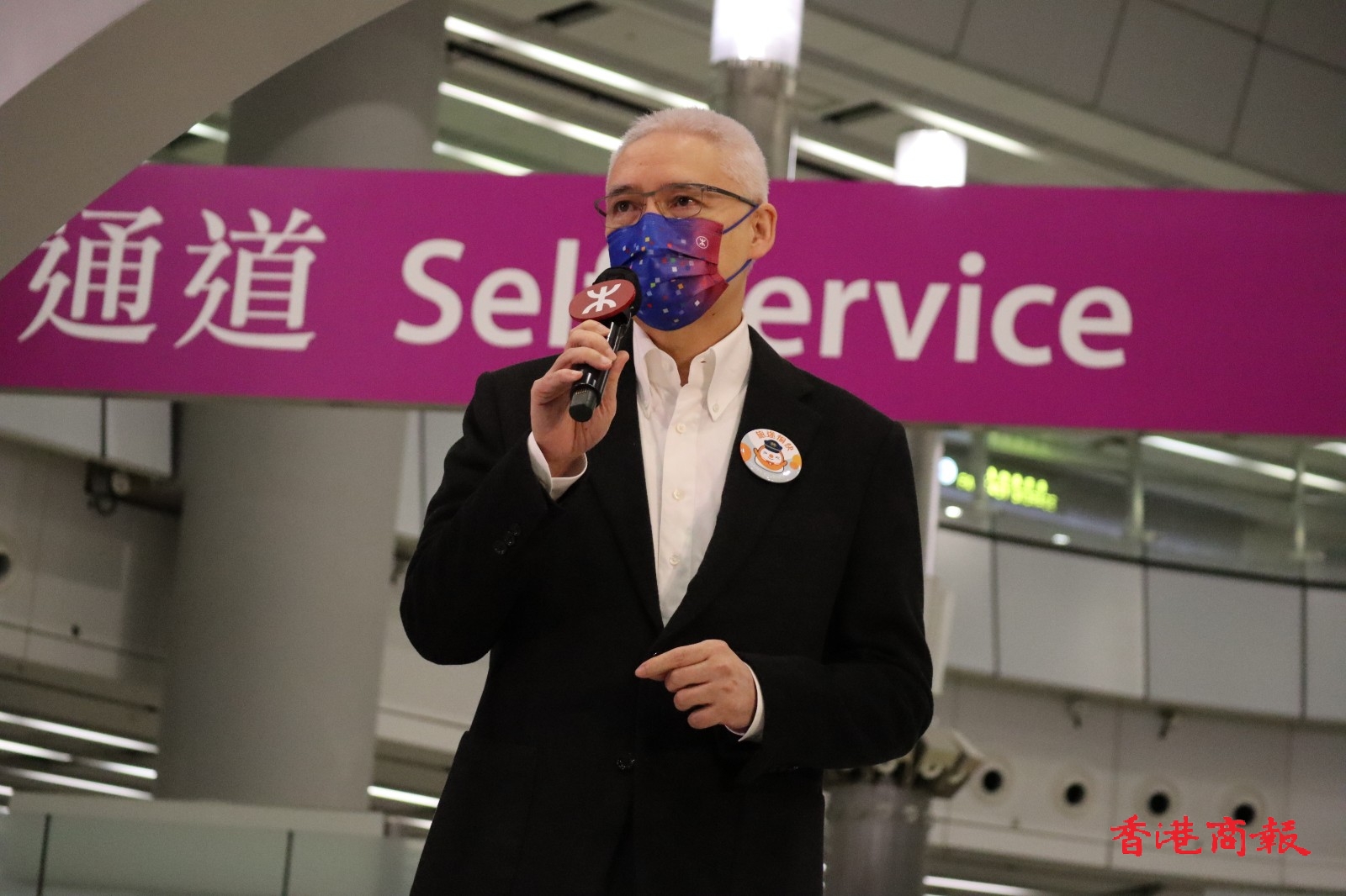 港鐵高層到現場參加完儀式之後,也和乘客互動給他們派送紀念品,他們都說心情十分興奮,行政總裁金澤培說他早上3點多就起來了。(香港商報記者 木子)
