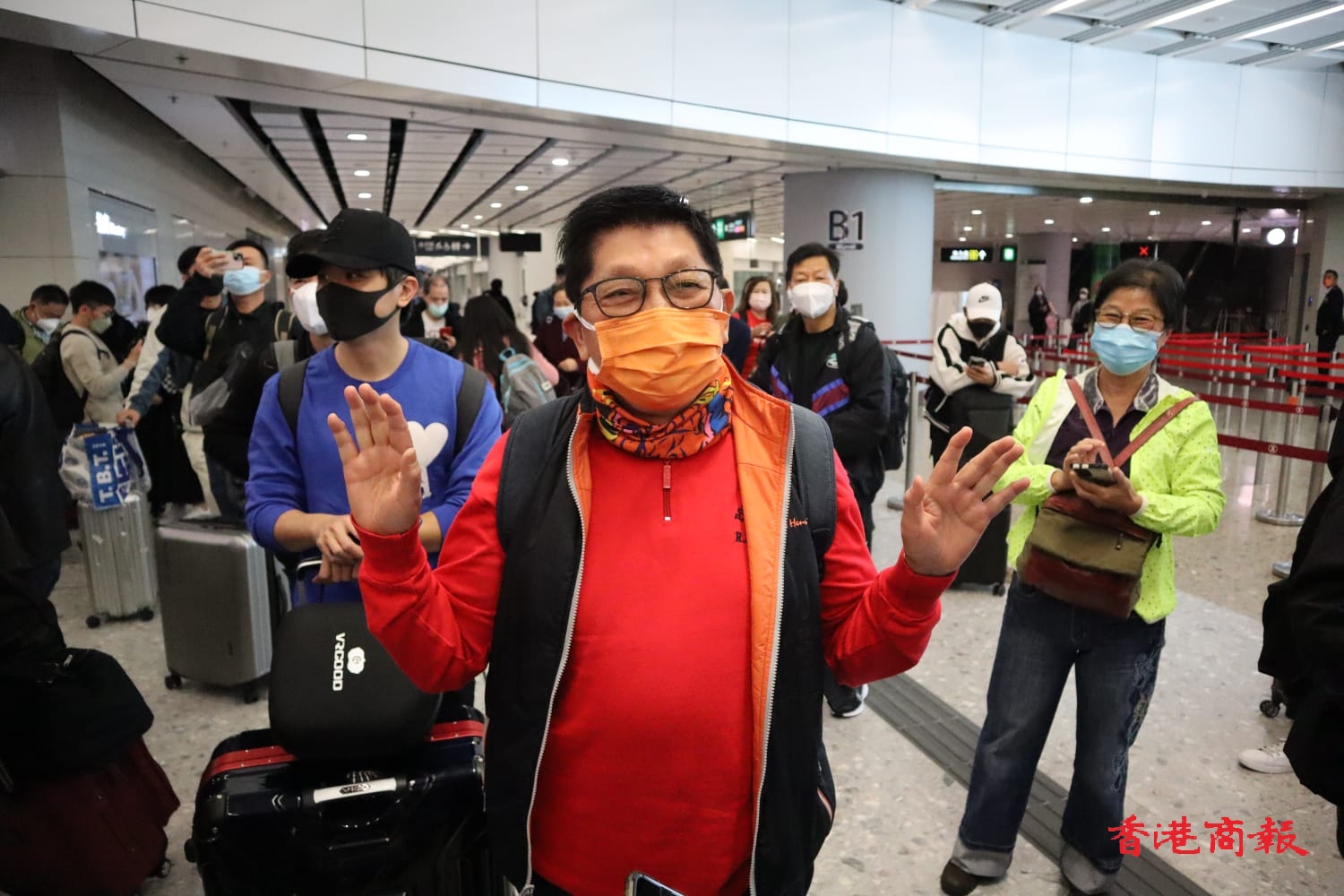 香港市民楊先生在香港西九龍站接受記者的採訪,他表示,已經三年沒有回家,現在非常開心,第一時間會坐車去品嘗香港的美食。(香港商報記者 盧偉 何嘉敏)