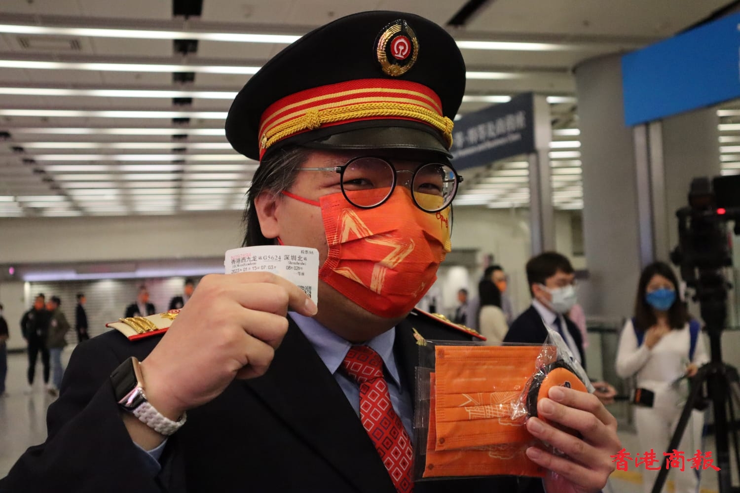 鐵路迷謝先生表示,為慶祝重新通車,特別穿上了中國鐵路公司的制服,終於可以乘坐高鐵回到內地,很興奮。今日會到深圳並即日來回。他指相隔三年香港終於可以重新接駁到國家的鐵路系統,非常值得高興。(香港商報記者馮煒強 攝影馮瀚文)