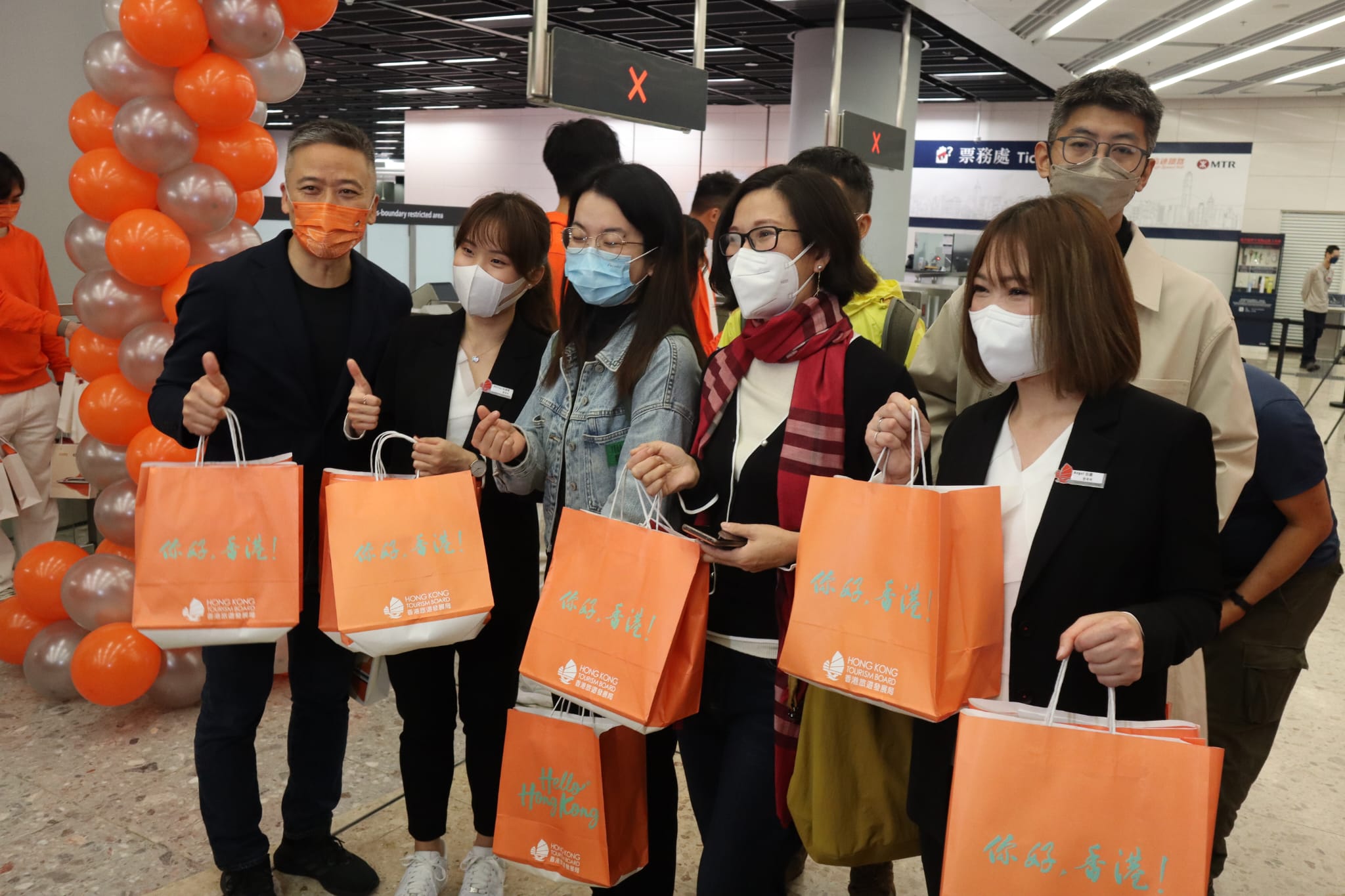 隨後,港鐵代表又迎接了通車後的首批乘客,並向乘客派發禮品。(香港商報記者 馮煒強 攝影馮瀚文)