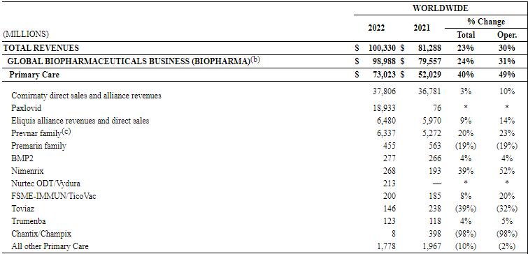 財報顯示,2022年新冠疫苗Comirnaty的營收為378億美元,與2021年相比增長了3%,2022年新冠口服藥Paxlovid的營收為189億美元。