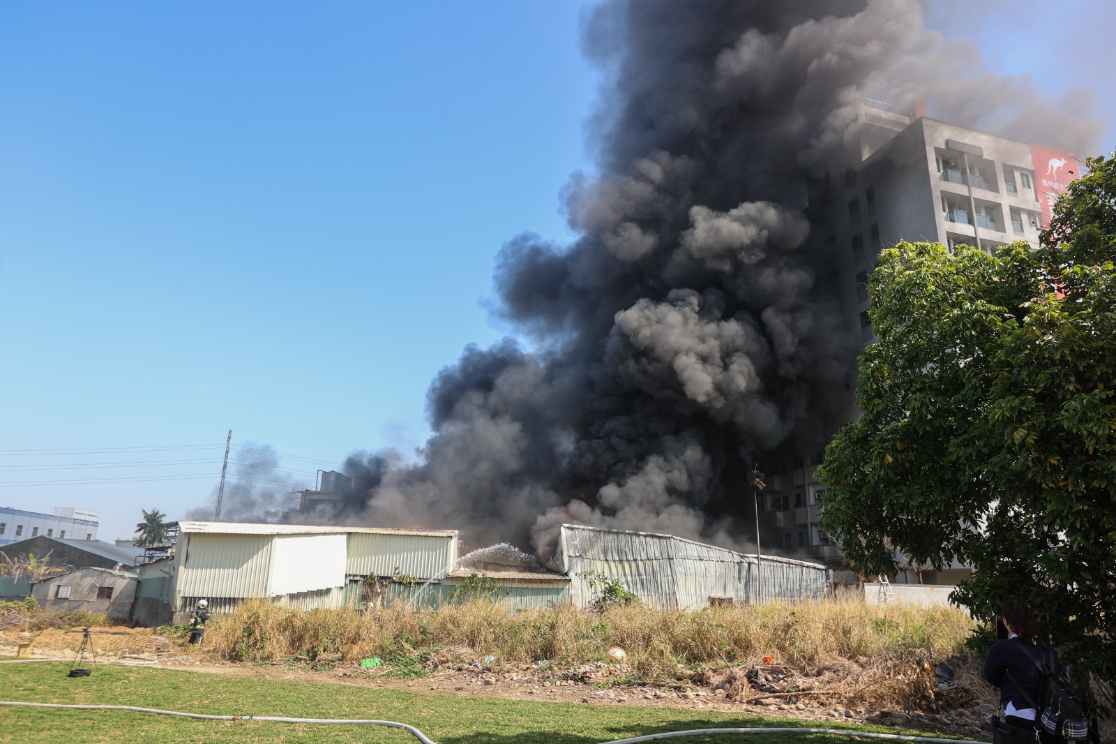 台灣台中市霧峰中正路一間工廠,2月23日上午8點20分起火燃燒,消防局獲報持續增援消防人員到場搶救,因廠內堆放紙箱,火勢一發不可收拾,並延燒隔壁民宅,火警近中午時撲滅,幸無人員傷亡。(圖源:中通社、中央社)