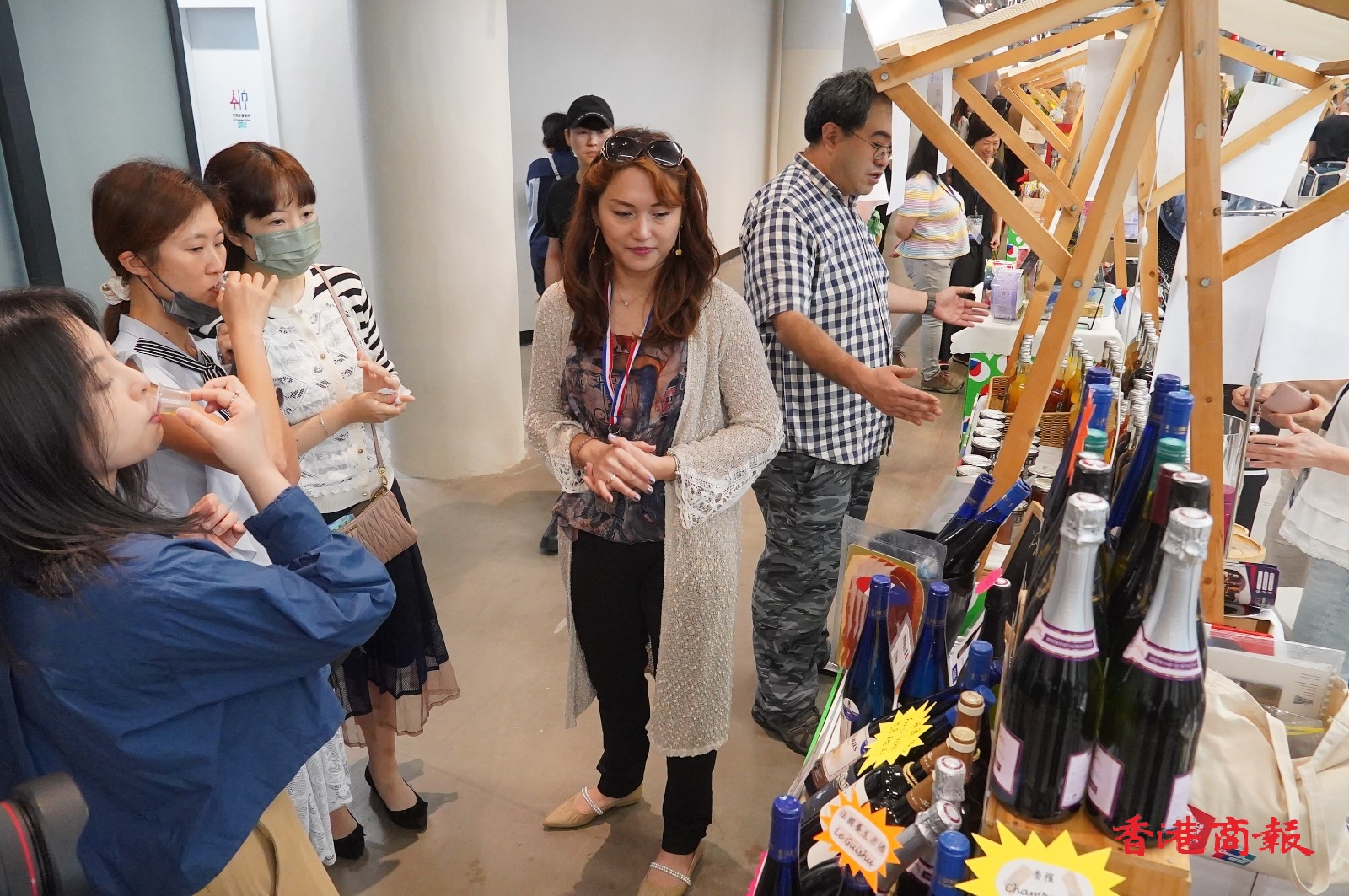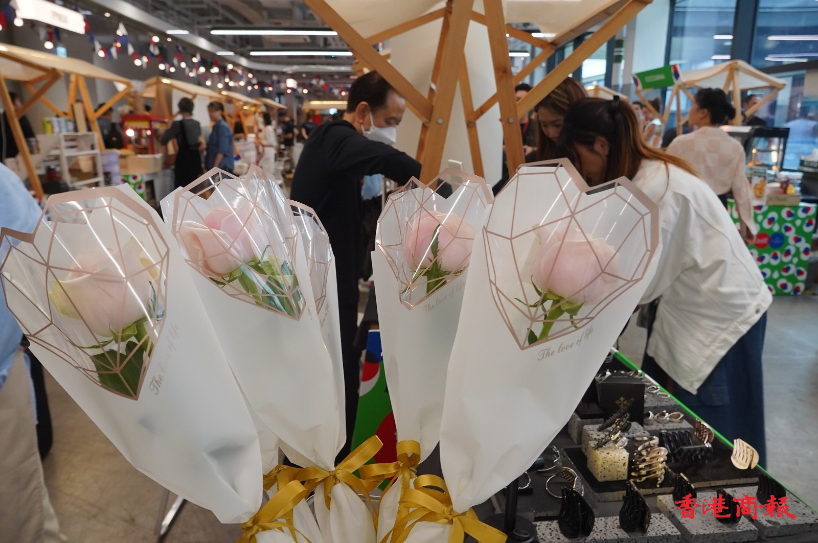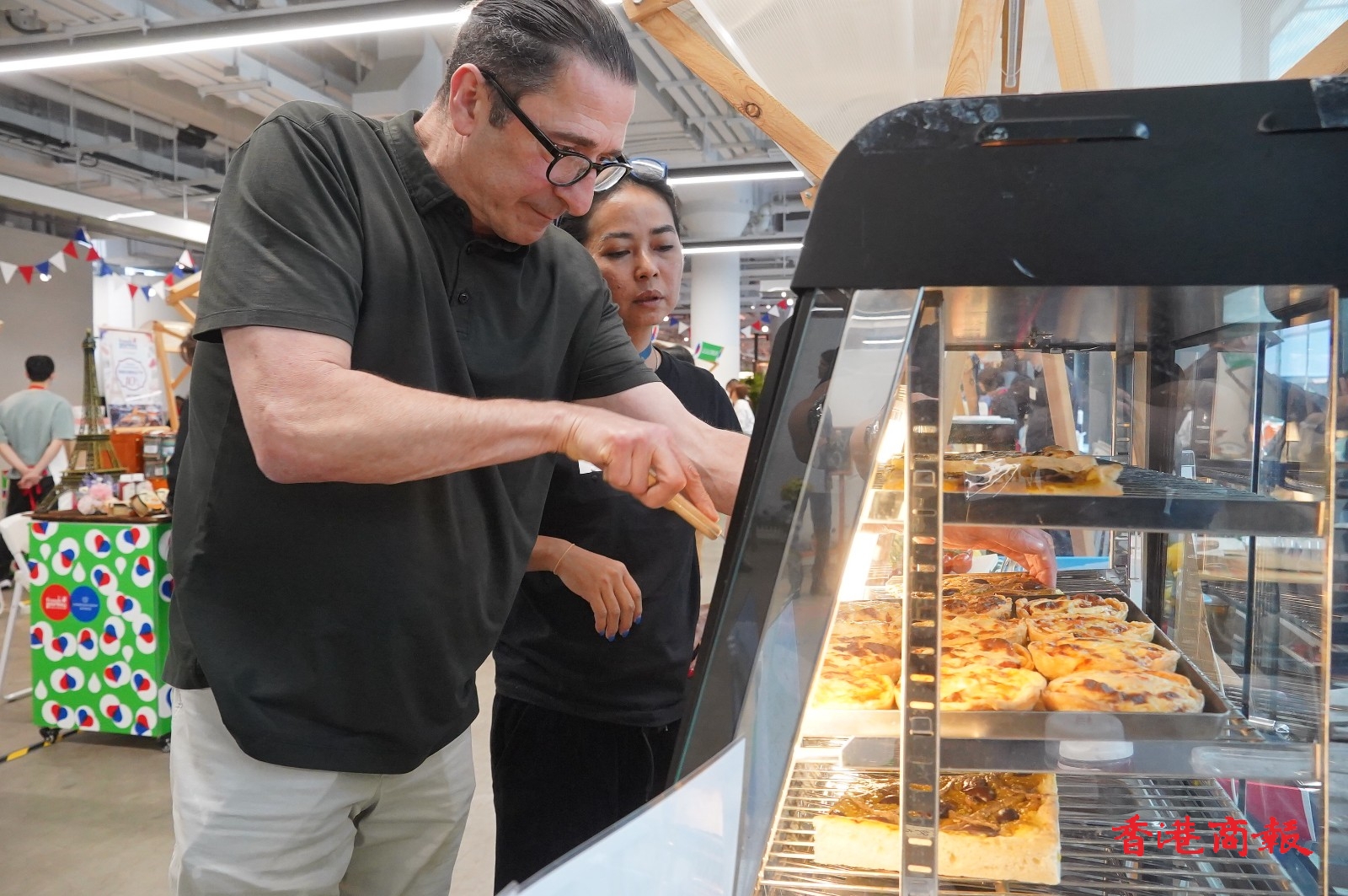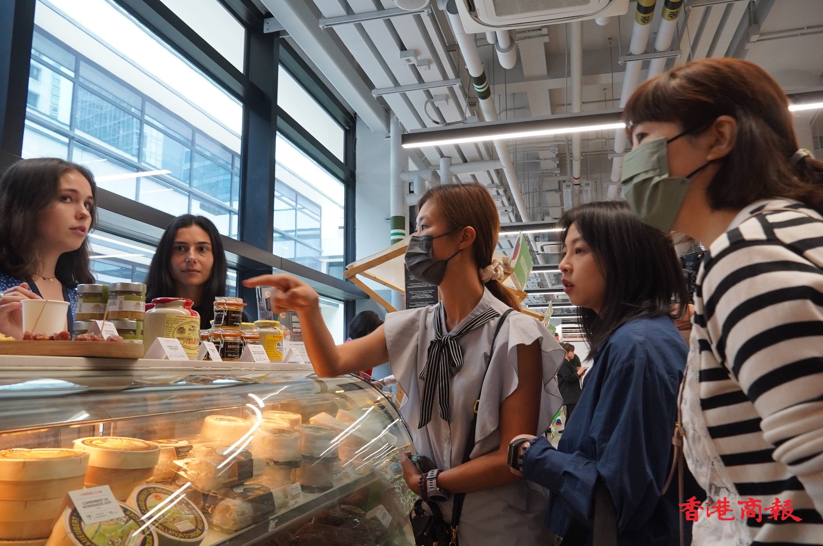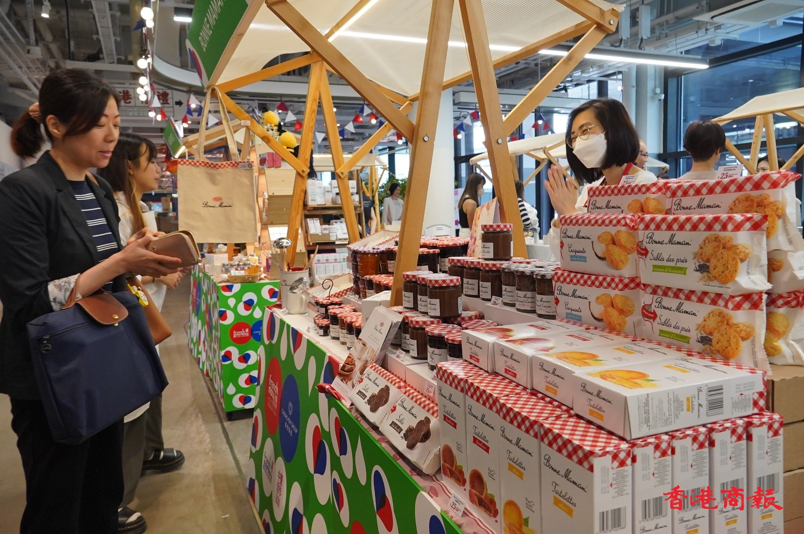 除了深受歡迎的法國傳統市集外,今年還與華懋集團共同呈獻中西方的藝術交流——在法國藝術家安東納‧傅黑諾帶來互動藝術裝置《水燈塗鴉》的同時,香港藝術家何文蕙亦為大家獻上別具意義的藝術創作。《水燈塗鴉》旨在以新穎及獨特的方式創造環保藝術,並由何文蕙在此裝置上創作兩幅以自然為靈感的畫作,體現跨港法文化的交流。兩位藝術家今日亦在中環街市親身見證《水燈塗鴉》揭幕,何文蕙即席完成畫作《塞壬之歌》,令開幕儀式生色不少。作品描繪一位海洋守護者在全球暖化和密集的人類活動的雙重影響下,仍努力保護海洋及海洋生物,呼籲人類保護海洋和自然環境。(記者 俊文攝)