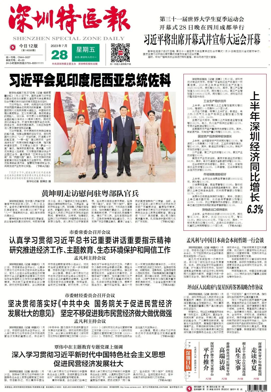 上半年深圳GDP同比增長6.3%
