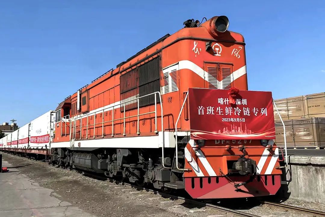 集集鮮生喀什-深圳首班生鮮冷鏈專列從新疆喀什站駛出。受訪單位供圖