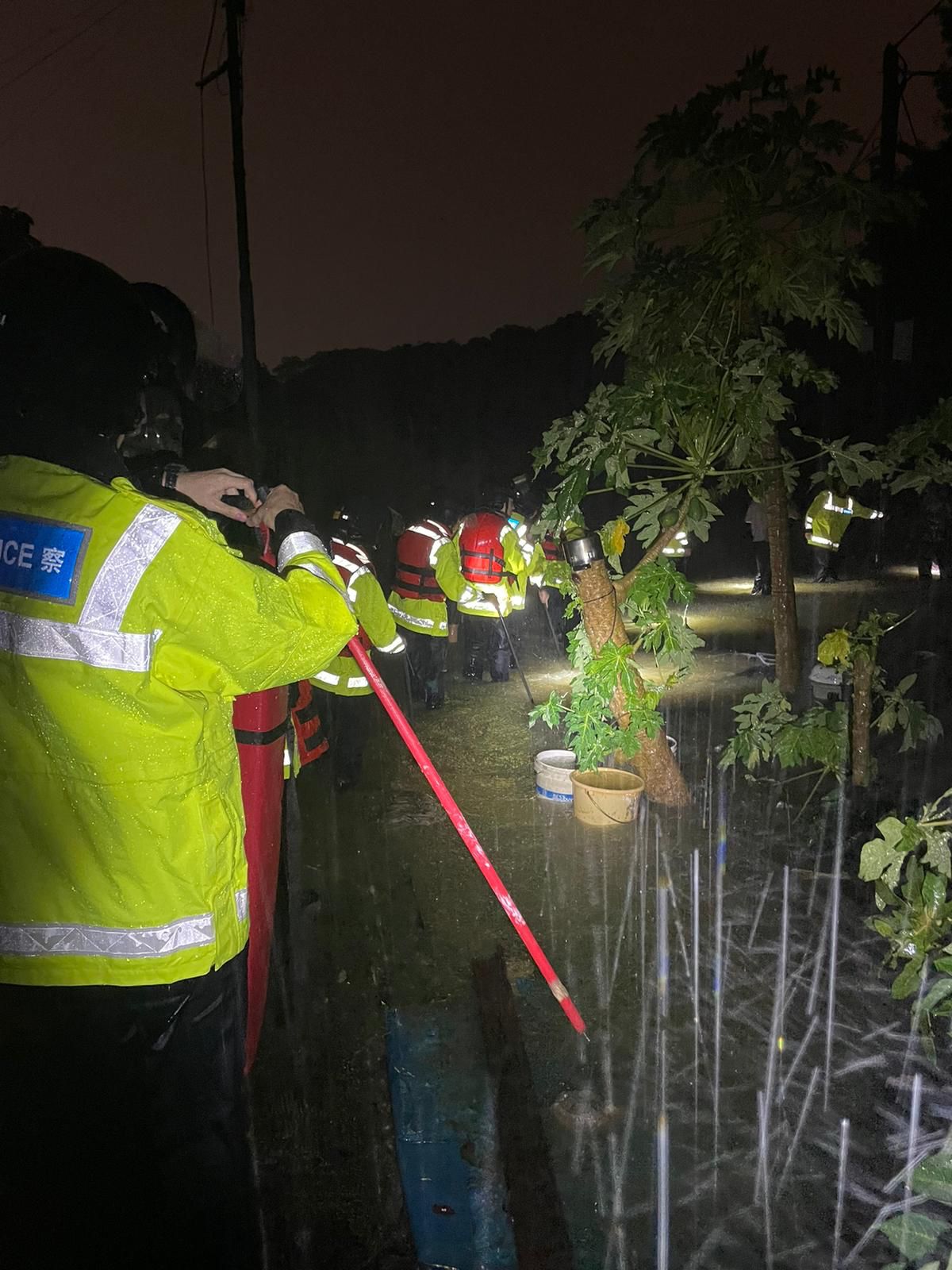 8日凌晨時分,警方人員在新界北區拯救被洪水圍困市民。(香港警隊社交媒體圖片)