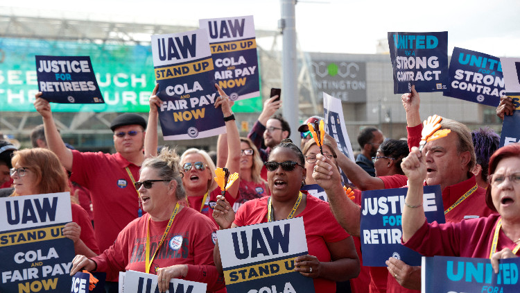 公開資料顯示,UAW為美國最大的工人協會之一,其在「底特律汽車三巨頭」——通用、福特、Stellantis集團吸收的成員高達14.6萬人,約佔美國汽車製造業全部工人數量的56%。(圖源:路透社)