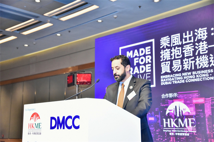 香港─中東經貿協會與迪拜多種商品交易中心(Dubai Multi Commodities Centre, DMCC),今早(21日)在灣仔會展合辦講座「乘風出海:擁抱香港—迪拜貿易新機遇」,討論香港與迪拜金融貿易的新機遇。 DMCC執行主席兼首席執行官Ahmed bin sulayem此次專程訪港,他在開幕致辭時形容迪拜與香港擁有許多共同之處,例如國際化、城市有活力,最適合兩城之間互相學習,共同進步 。