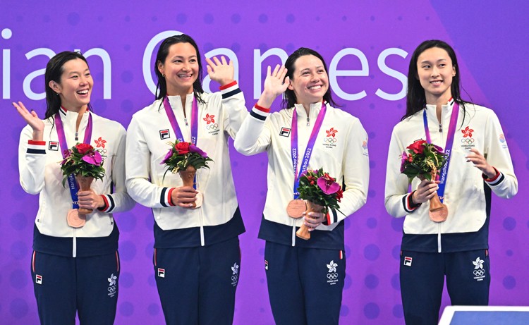 而在杭州奧體中心游泳館舉行的游泳項目中,何詩蓓先於女子50米蛙泳決賽取得銅牌,繼後帶領接力隊於女子4x100自由泳決賽,以3分39秒10破香港紀錄時間完成,收穫銅牌。