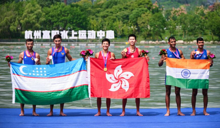 在早上進行的男子雙人單槳無舵手決賽,港隊組合林新棟/王瑋駿做出6分44秒20,後上擊敗烏茲別克組合,贏得金牌,打響頭炮。陳穗津在女子太極拳太極劍全能賽,累積19.476分奪得銅牌,為港隊取得今屆賽事第2枚獎牌。
