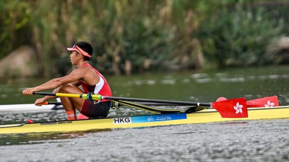 頂圖:杭州亞運會賽艇男子單人雙槳決賽舉行,中國香港選手趙顯臻摘銅。圖源港協