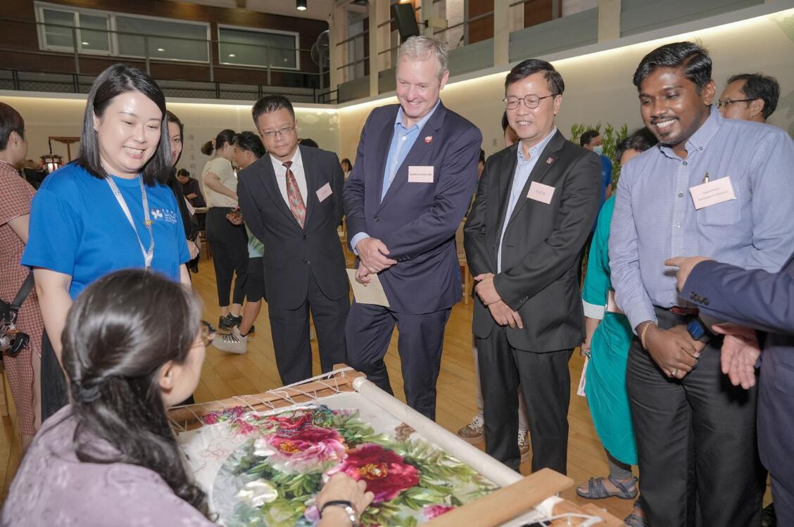 活動尾聲,現場嘉賓一起移步室內生活美學館。在室內悠揚的嶺南古琴的伴奏聲中,有的嘉賓被優雅的非遺點茶技藝所吸引、品嘗了沁人心脾的中國傳統茶飲;有的嘉賓則親身體驗了廣東的紅木宮燈製作。更令嘉賓們交口稱讚的是,本次非遺美學展示中特意加入的「廣繡和蜀繡」的對話環節。刺繡技藝在兩種不同地域發展下,呈現出不同的美感和味道,兩種藝術的碰撞更加呈現出中國傳統美學的獨特趣味,彰顯出魅力非凡的「中國美」。