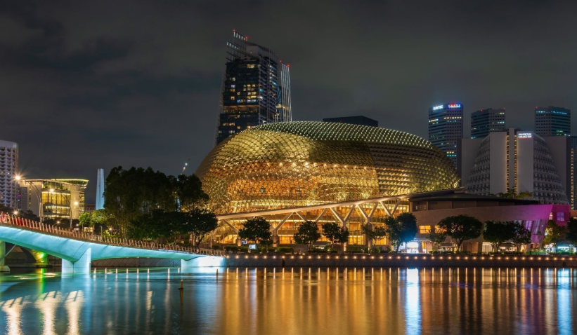 夜色中的《詠春》首演地點 新加坡濱海藝術中心(深圳報業集團特派記者 余冕 攝)