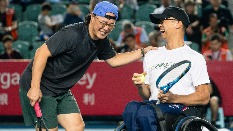 本周在維園上演的「保誠香港網球公開賽2023」,於周三(11日)特別舉行結集競技、音樂、歡樂的「星級名人賽」,以雙打方式進行輪椅賽對陣,由中國香港網球總會推廣大使陳奕迅(Eason)夥拍將代表香港出戰第4屆亞洲殘疾人運動會的莫家安(安仔),與香港網球前一姐張玲、輪椅網球手劉冠東(阿東)的組合於場上獻技。