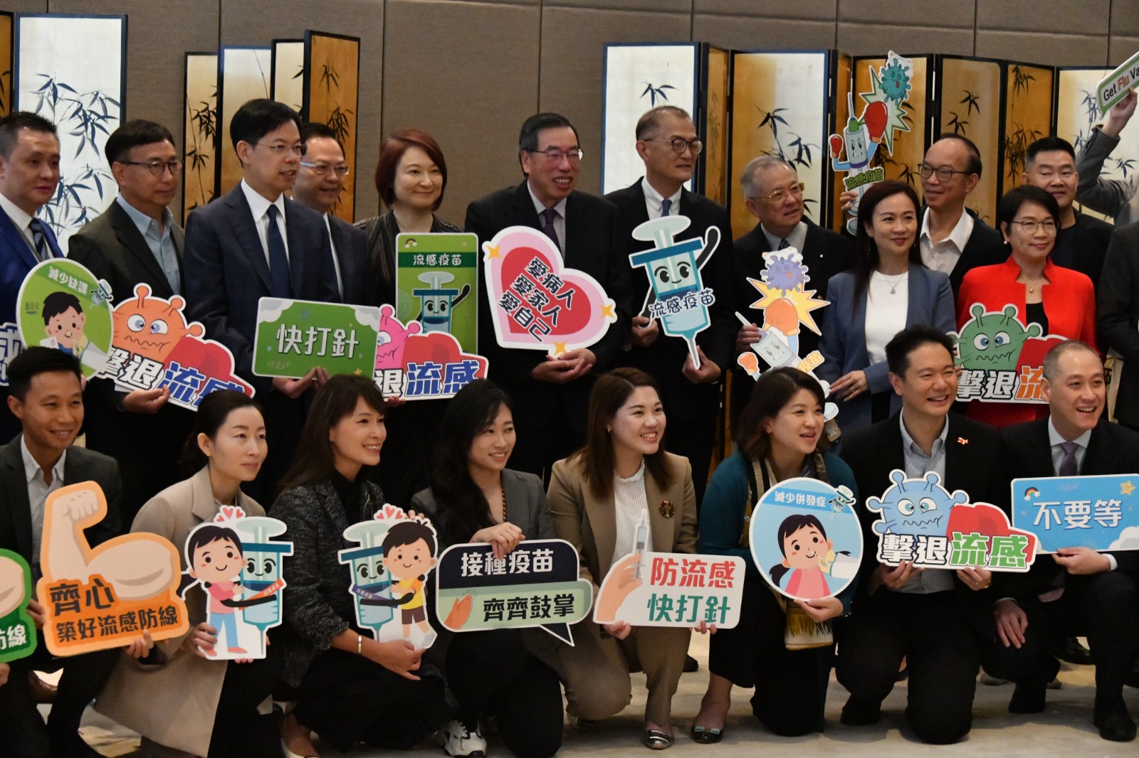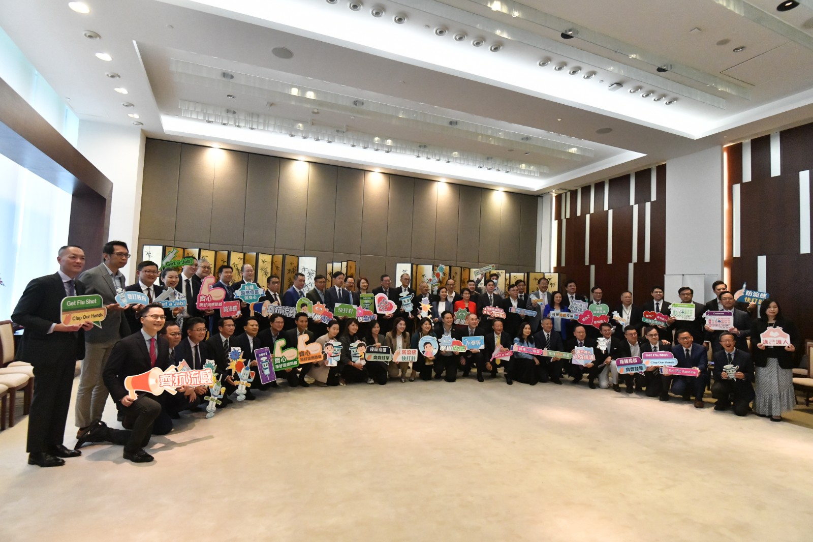 醫務衞生局局長盧寵茂與議員拍攝大合照後表示,選舉大家也想安心,12月10日除了是投票日,亦是流感高峰開始,希望大家保護好自己,接種疫苗後,參加區議會選舉活動,12月10日去投票,希望議員落區推動選舉工作同一時間推動疫苗接種。