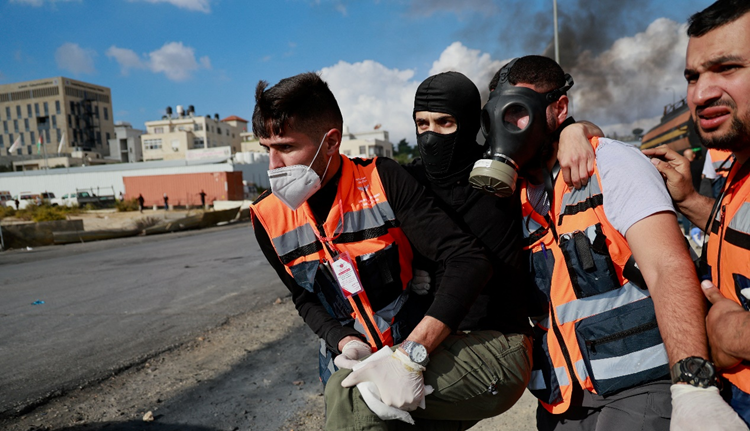 頂圖:在西岸城市拉姆安拉,當地巴人與以軍展開激戰,一名受傷巴人被送往治療。 路透社