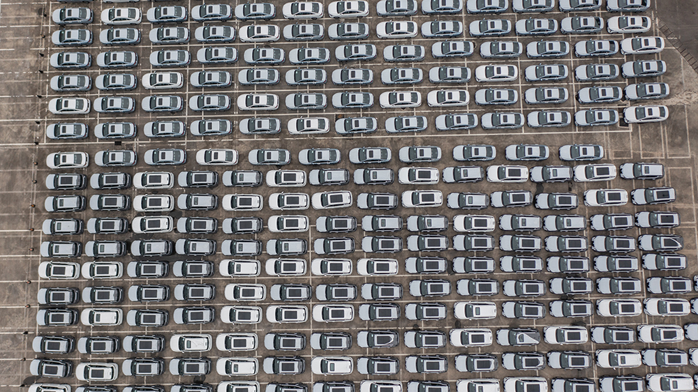 頂圖:2023年10月11日,重慶國際物流樞紐園區內等待出口的汽車。新華社