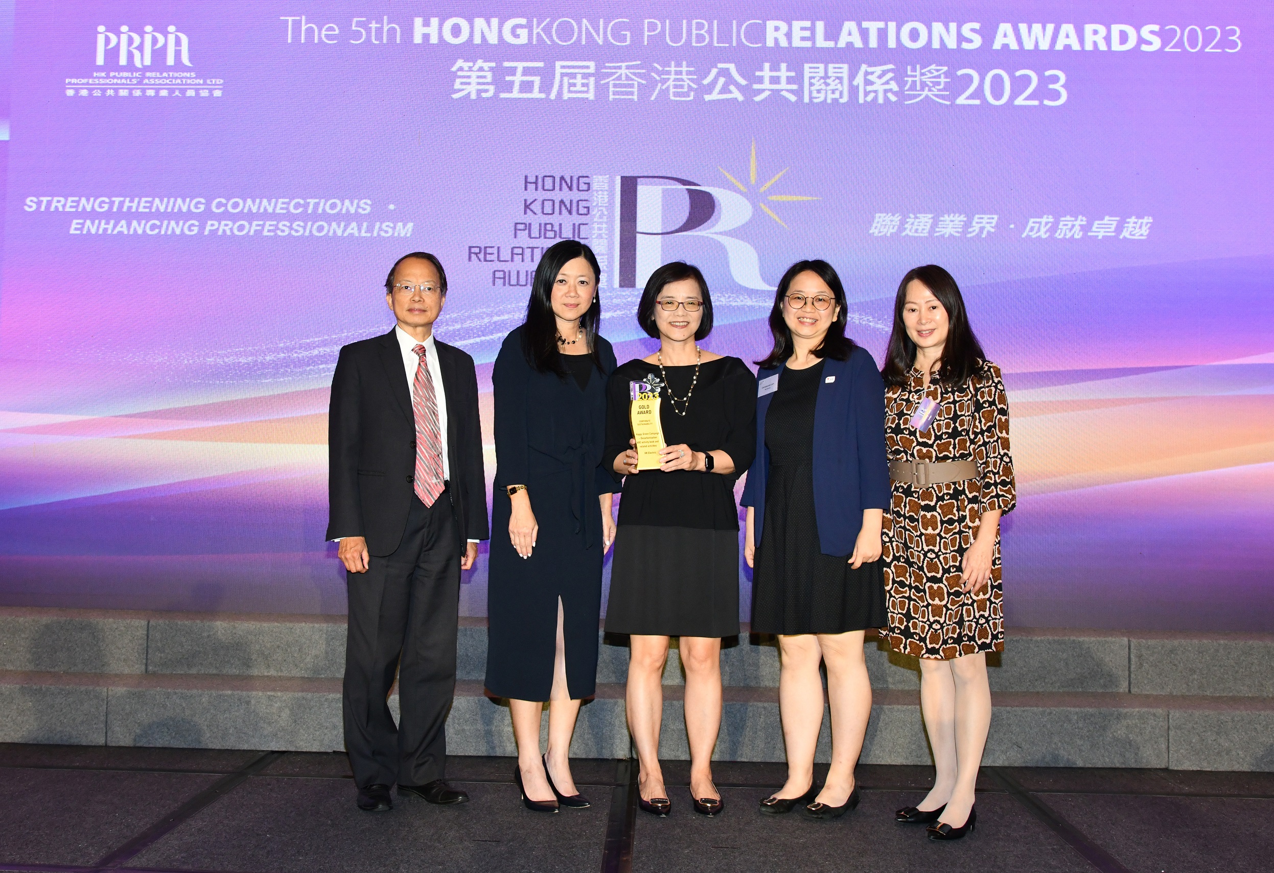 港燈公共事務總經理楊玉珍(中)接受 「第五屆香港公共關係獎2023」「企業可持續發展」組別金獎。