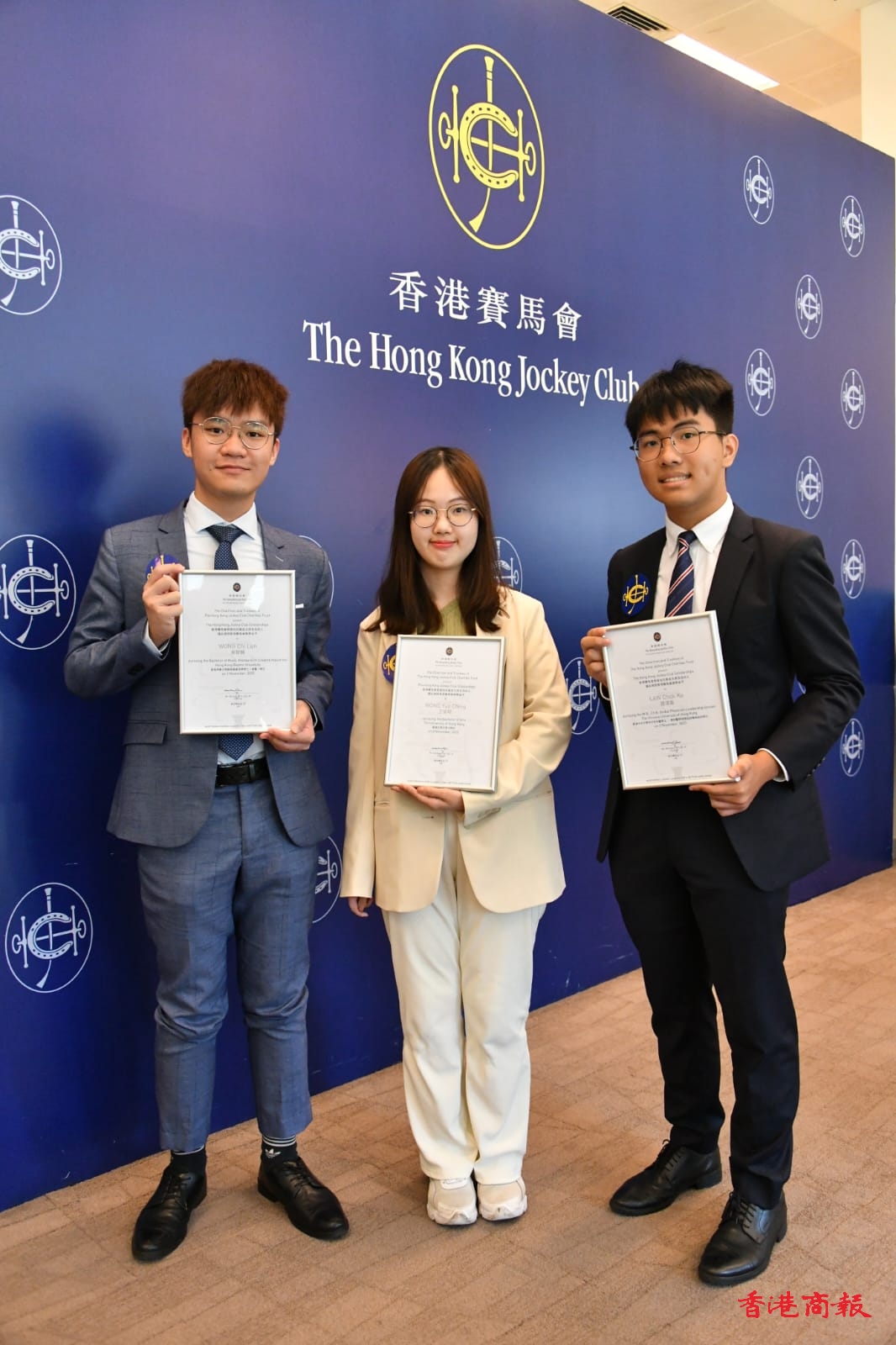 今年的香港賽馬會獎學金昨晚(2日)揭曉,共106名成績卓越及熱心服務社會的學生獲獎,其中3名獲獎者親身講述得獎感受。主席卓越獎學金得主羅澤嘉是應屆DSE「超級狀元」,他選擇留港讀醫全因想改善香港醫療體系。駿步人生獎學金得主王愉程患有「先天性結締組織異常」,是乒乓球港隊代表,經常出席各項國際賽事。本科獎學金得主黃智麟正攻讀音樂,希望透過音樂協助情緒困擾人士。