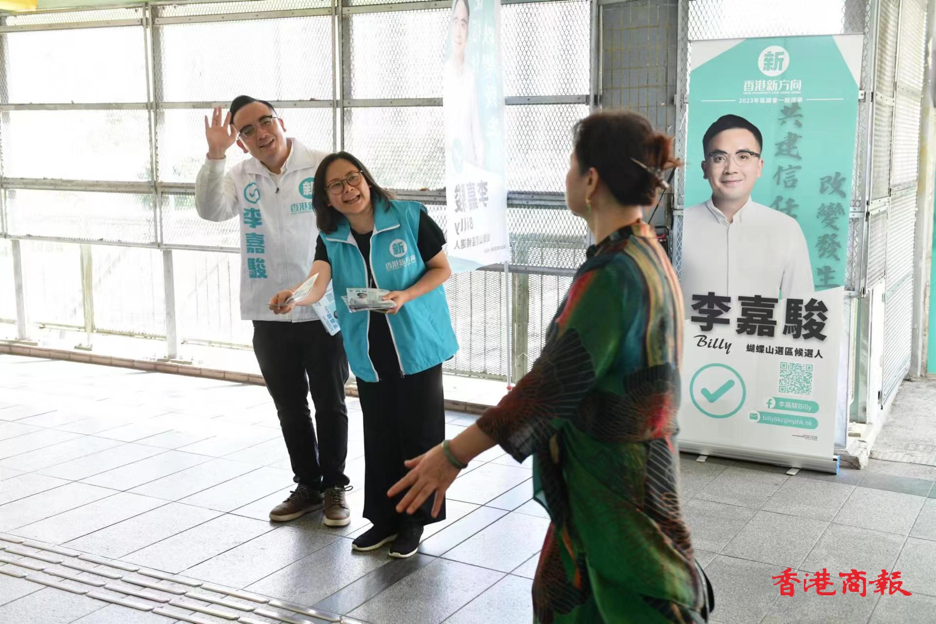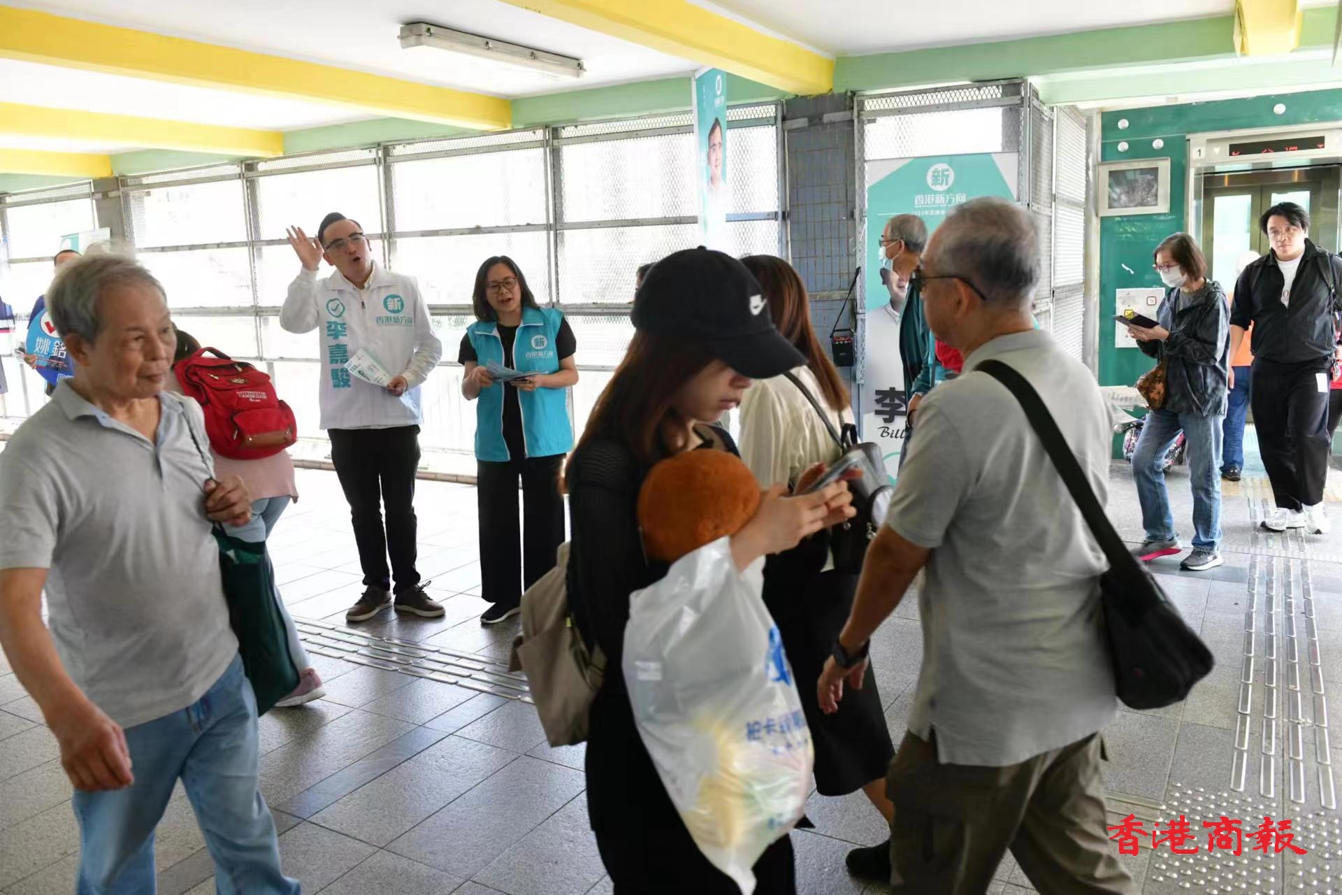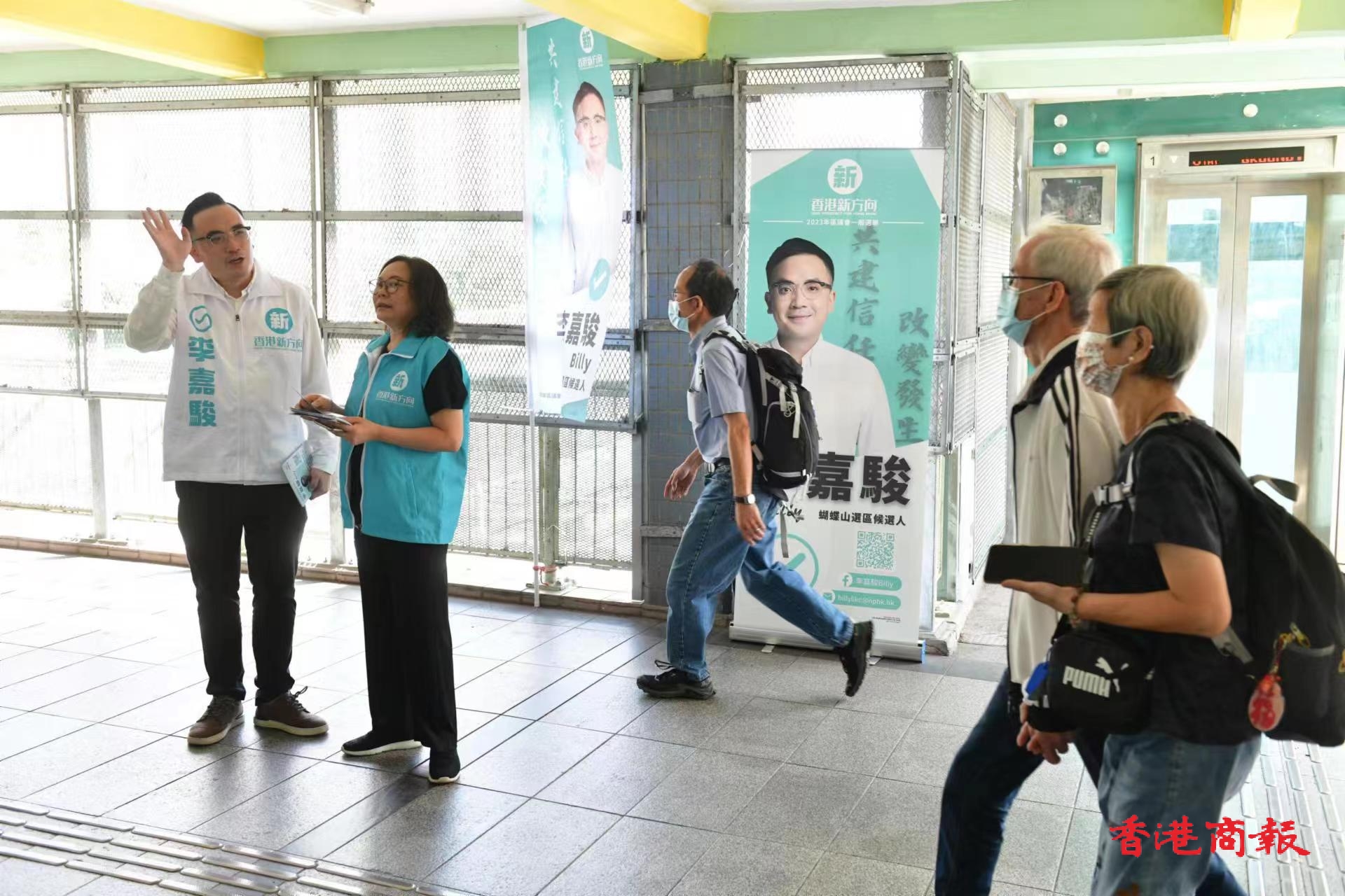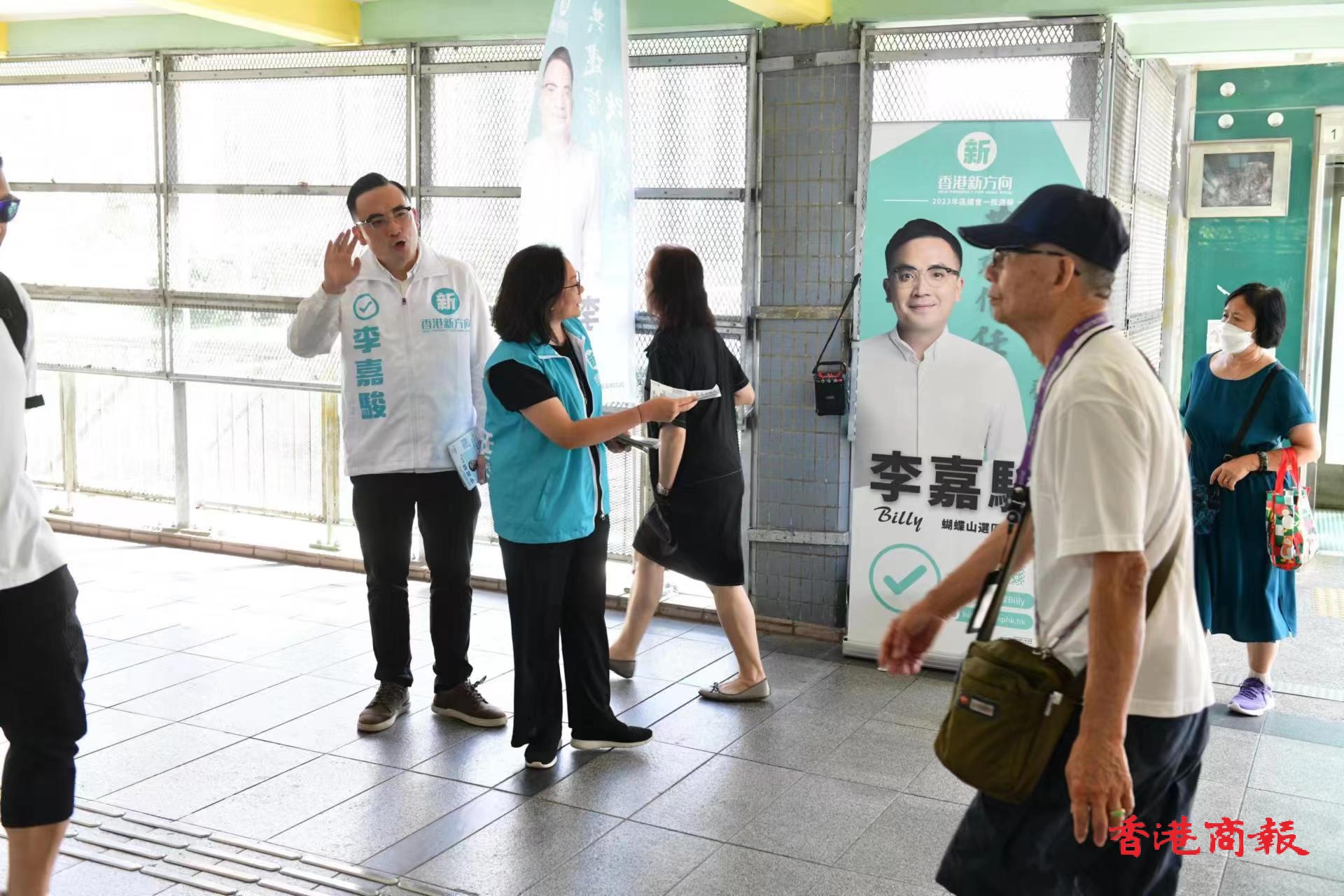 參選2023年區議會一般選舉蝴蝶山選區的香港新方向李嘉駿,盡力爭取選民支持。崔俊良攝