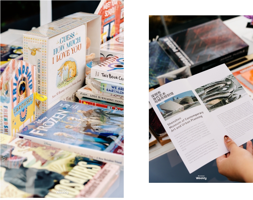 書市還聯合了關山月美術館、深圳市當代藝術與城市規劃館,陳列出售一些精美的文創周邊,比如帆布袋、手機殼、紀念圖冊和裝飾擺件等等,非常豐富。現場還可以領取藝術館的介紹冊哦。
