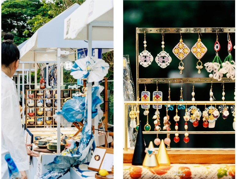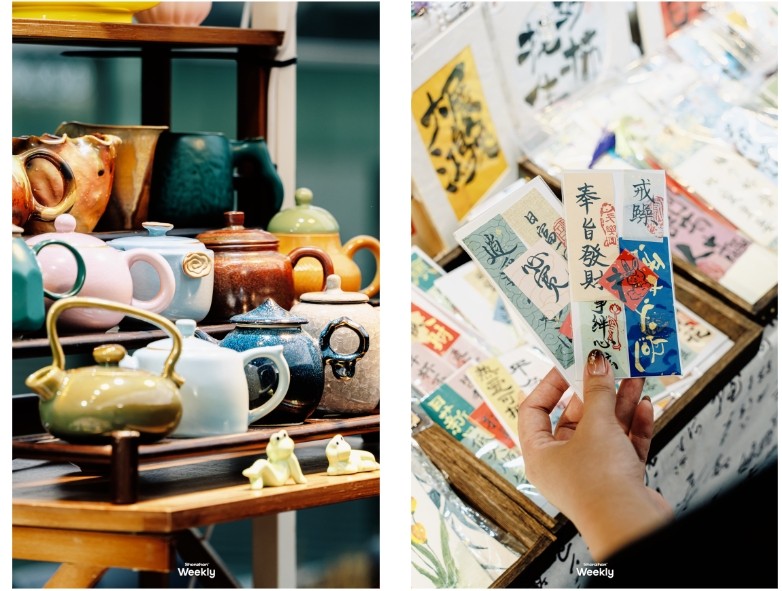 繼續往前走,便來到了書式生活文創區域。這裏匯集了各式原創手作、中式書畫、飾品擺件、茶具皮具等等,每個攤位都琳琅滿目,值得花點時間逛逛。