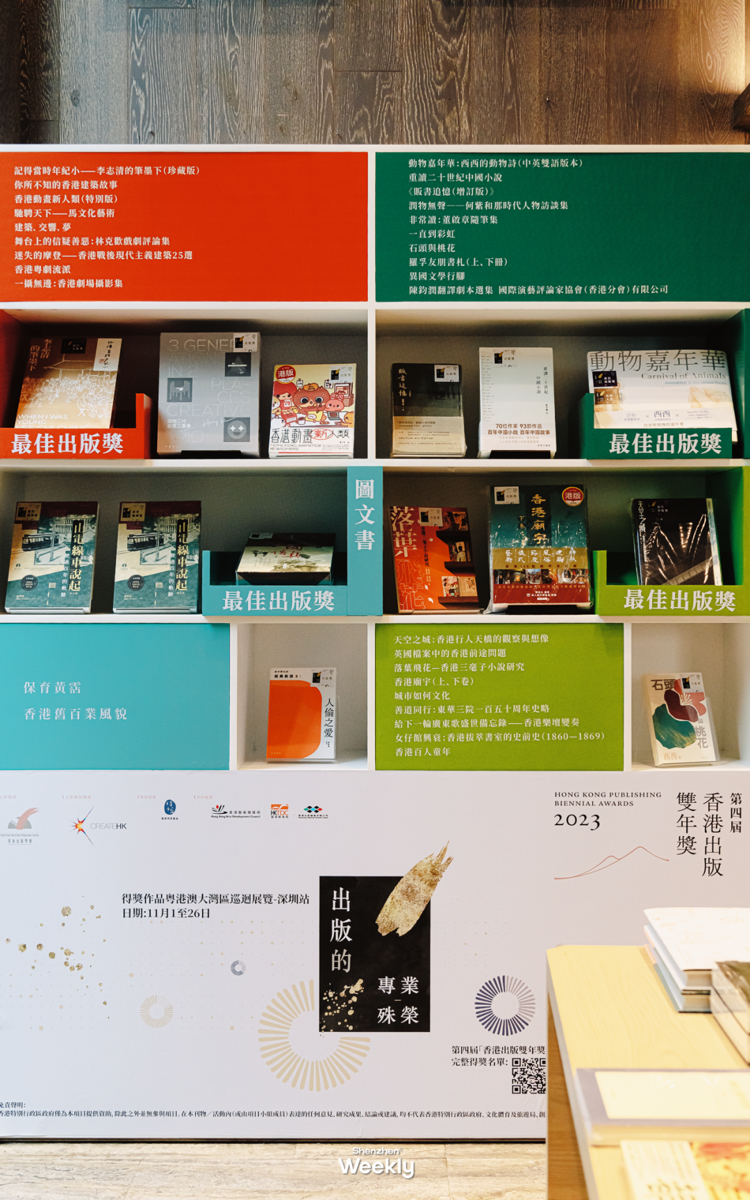 在聯合書店·本來藝文館,還可以打卡「香港出版雙年獎&深圳讀書十大好書展」。書架上陳列着深港兩地的精品好書,店內氛圍閒適而鬆弛,在這片理想的閱讀空間裏,城市喧囂似乎漸行漸遠。