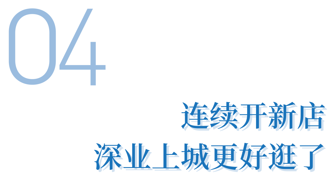 作為周末漫遊的好去處,深業上城匯集了不少品牌店和餐飲美食,好吃又好逛。近期又進駐了4家新店,打卡完書市可以順便逛一逛。