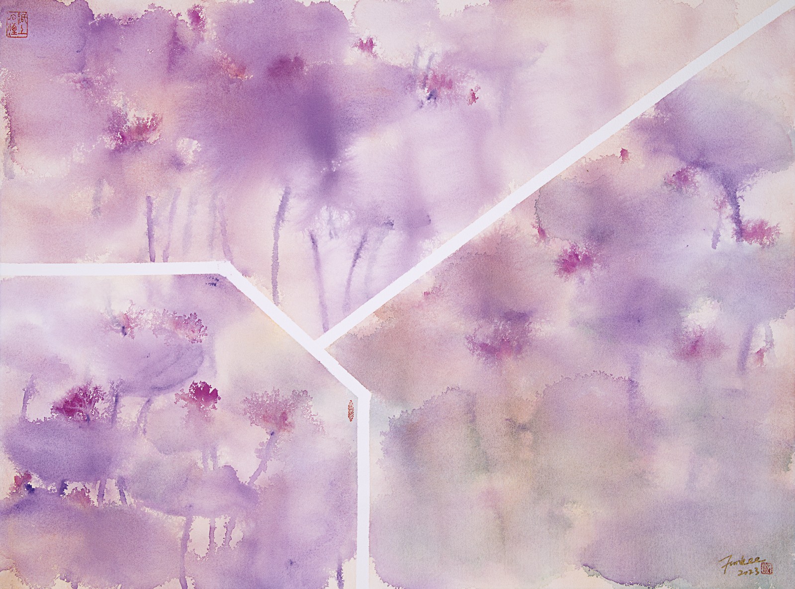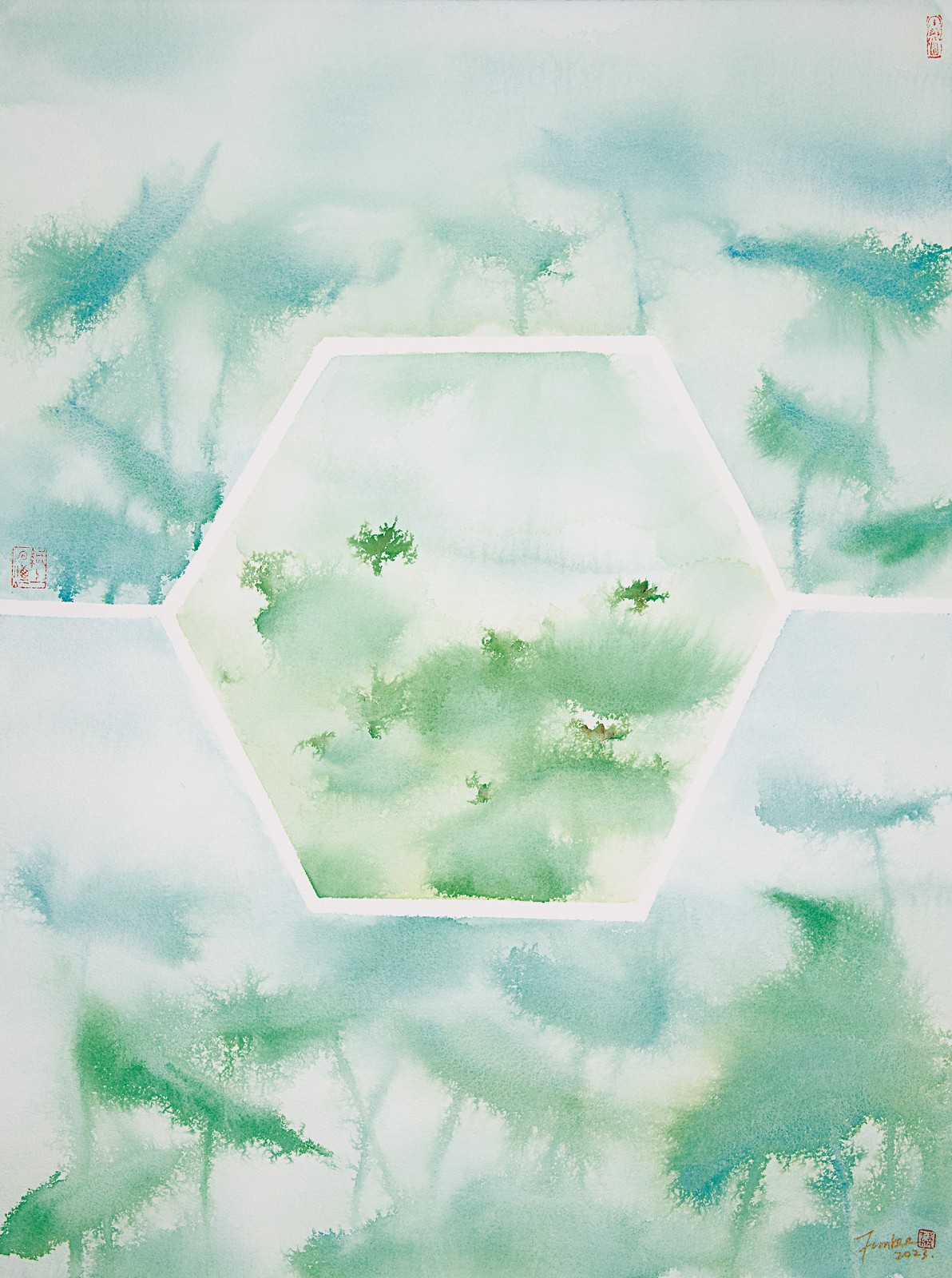 蕭芬琪作品《微茫煙霞集》,水彩畫,56.5×76.5cm,2023年。