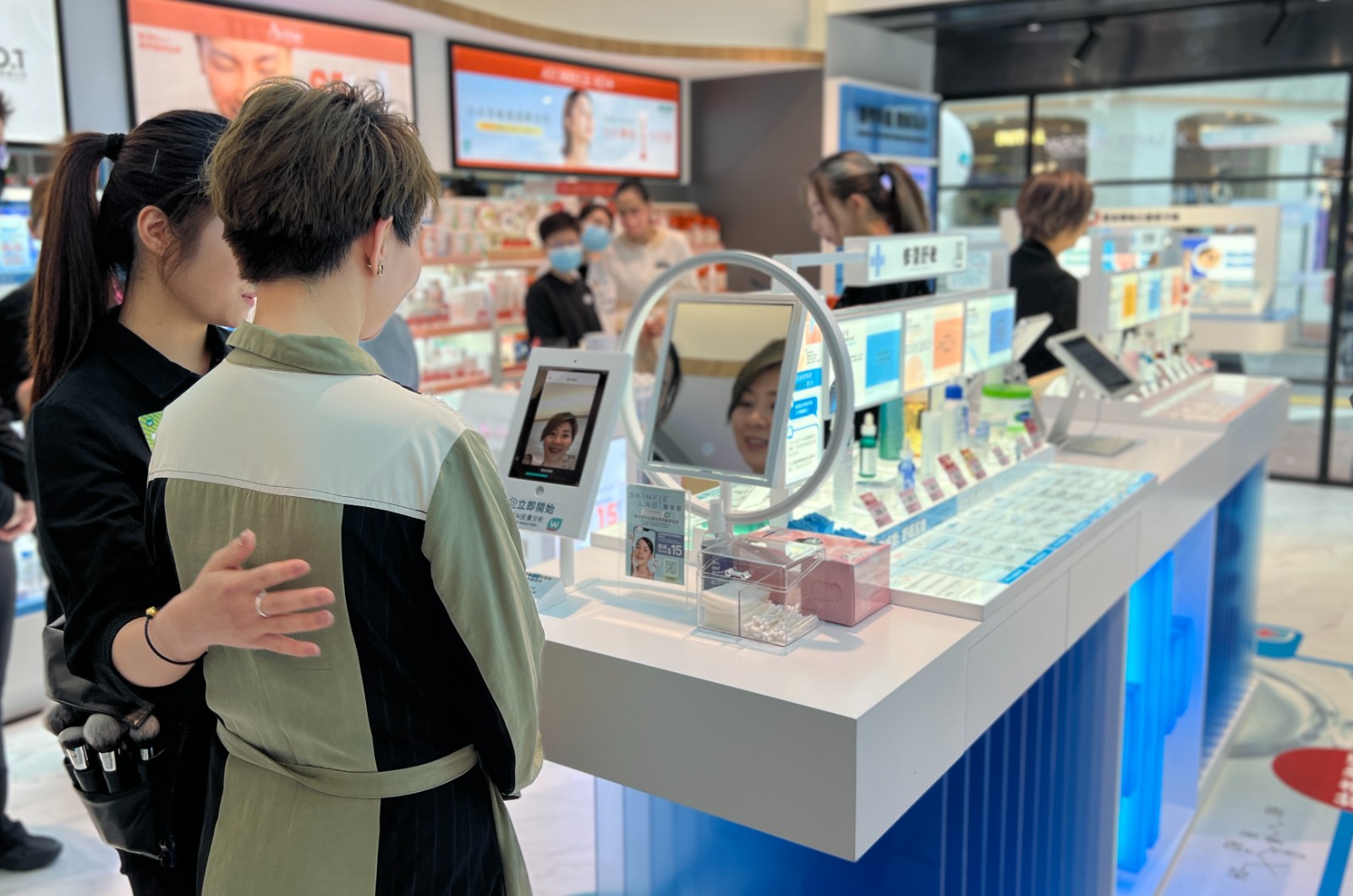 美容彩妝區引入新科技,帶來智能美妝體驗。旗艦店與歐萊雅皮膚科學美容事業部打造全新醫學美肌護膚專區,以Skinfie lab智美肌融合AI技術,通過自拍分析肌膚狀態推介相關產品,如提亮防曬、控油抗瑕、抗老修護、修復舒敏。彩妝區推出會員免費1對1美妝教室,現場傳授底妝及遮瑕技巧,並有韓國大熱色彩分析My Colour Studio個人色彩工作室,從膚色、瞳色、髮色找出專屬季節色調及色彩配搭技巧。公眾可透過APP的個人專屬「美妝檔案」,整合及記錄的護膚彩妝測試結果,由AI跟進皮膚狀況,推薦個人美容彩妝方案。