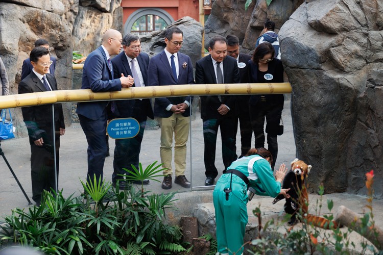 一眾主禮嘉賓於海洋公園「亞洲動物天地」參觀小熊貓護理訓練。