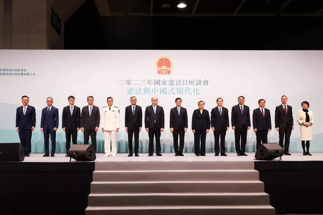 行政長官李家超今日(4日)在社交媒體發文說,今天是「國家憲法日」,特區政府和中聯辦每年都會合辦「國家憲法日」座談會,匯聚多位專家學者分享精闢見解,讓市民對憲法有更深刻的認識和了解。他提及今天座談會的主題是「憲法與中國式現代化」。他強調「一國兩制」是史無前例的偉大創舉,而憲法、基本法就是「一國兩制」行穩致遠的最佳保障。