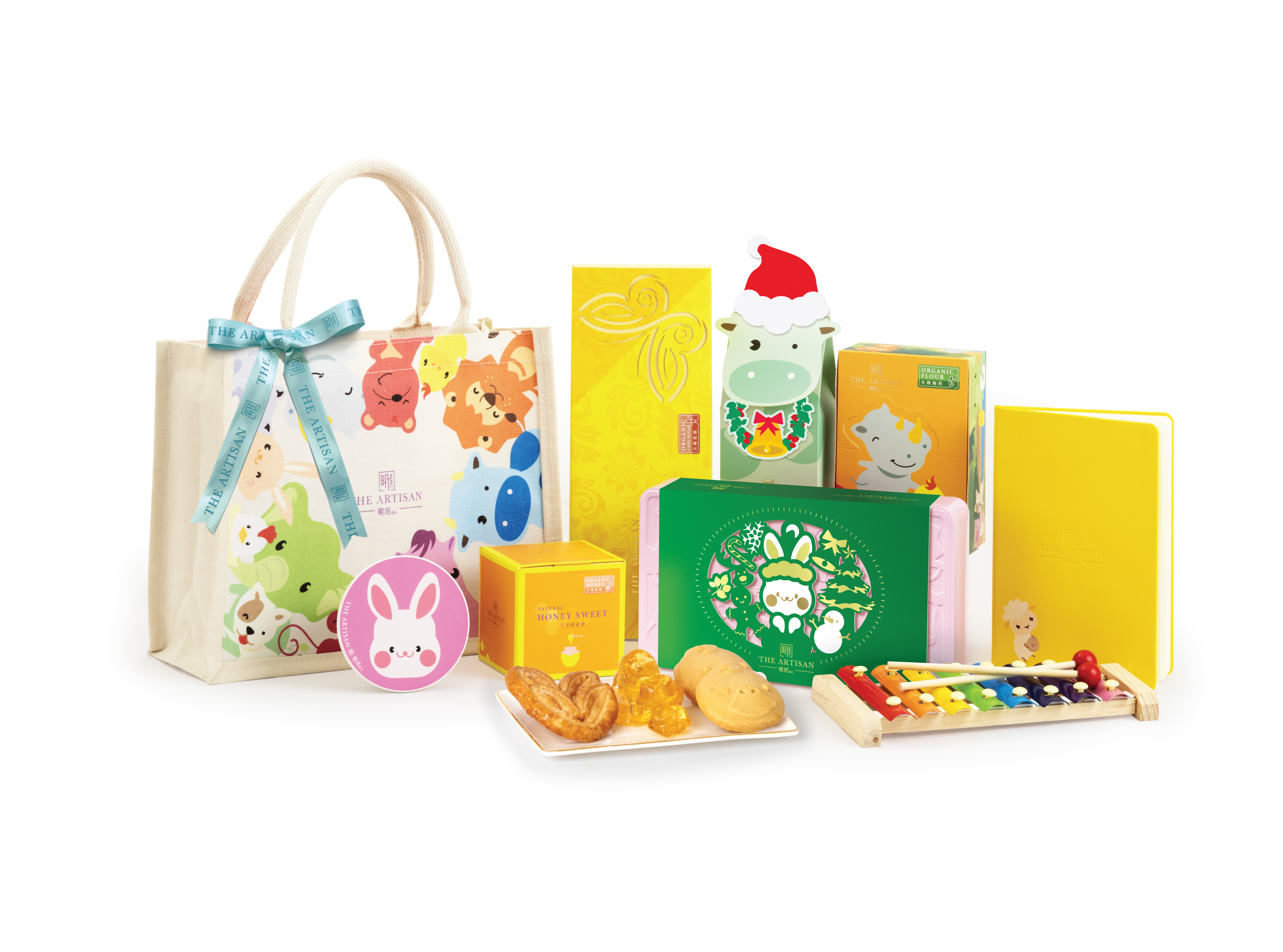 品牌選用有機食材,包括麵粉、蜜糖、果蓉等材料,並無添加色素、香料及防腐劑。禮籃系列匯聚各款品牌產品,以布製手提袋包裝,配上餅食、糖果及精品。聖誕或新年品味禮籃有10款產品,包括奇趣精選禮盒、奇趣動物小禮盒、蝴蝶酥禮盒、白花蜂蜜糖、杯墊、筆記簿、節日賀卡等,豐富實用。當中,造型有趣的奇趣動物小禮盒更附有期間限定聖誕帽、鹿角、財神帽或金元寶等小配件。