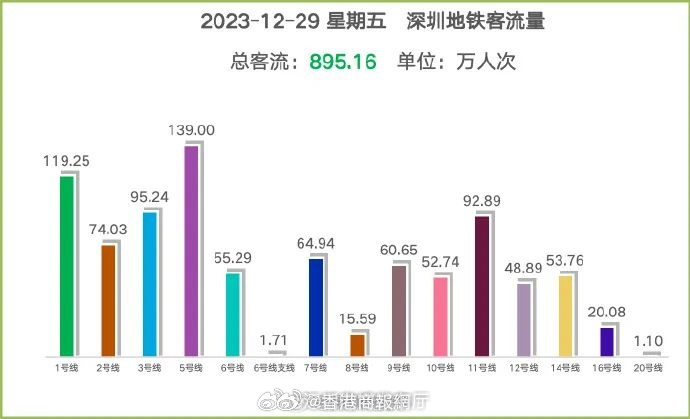 今天早些時候,深圳地鐵發布微博消息稱,2023年12月29日(星期五),深圳地鐵集團所轄15條運營線路(不含4號線)總客運量為895.16萬人次。